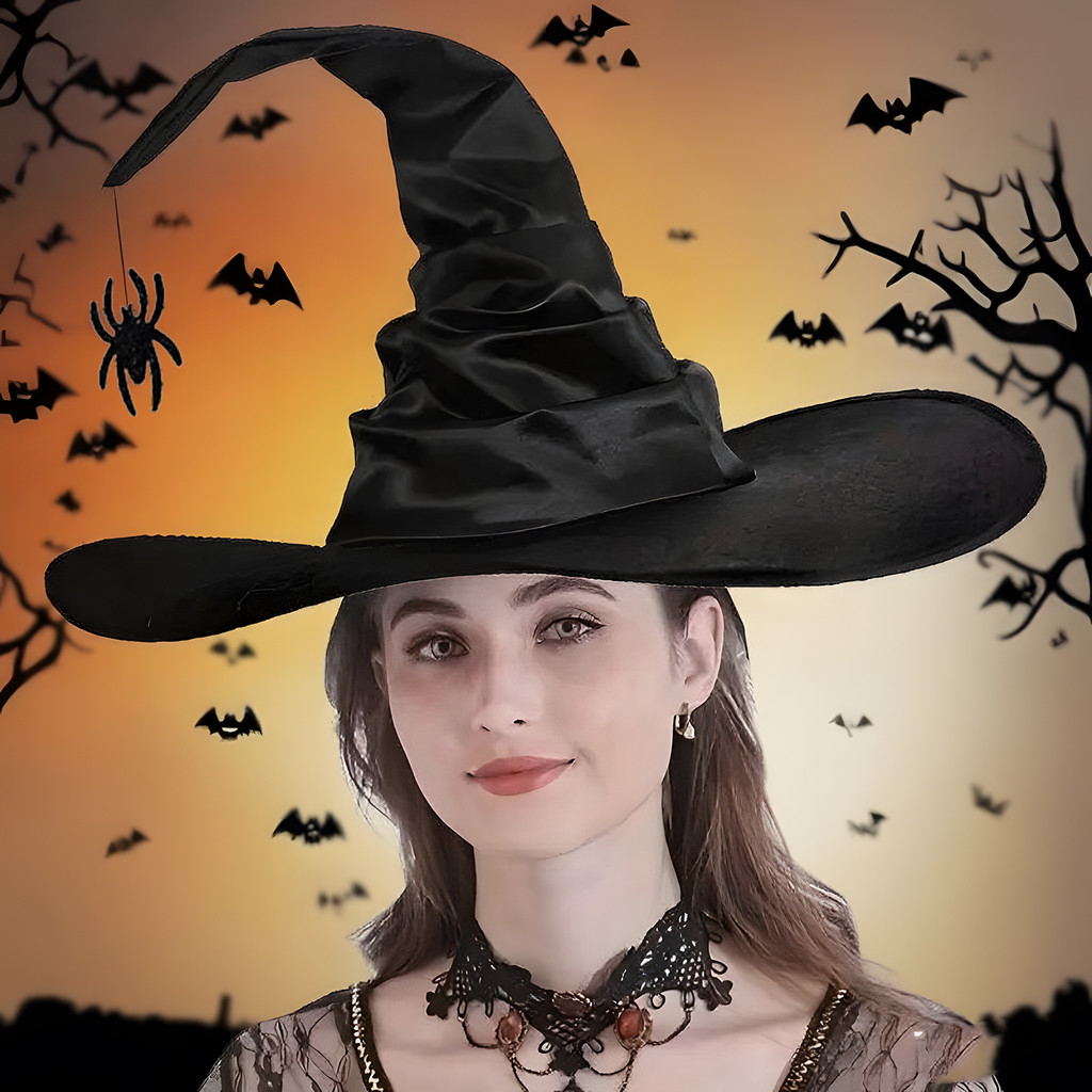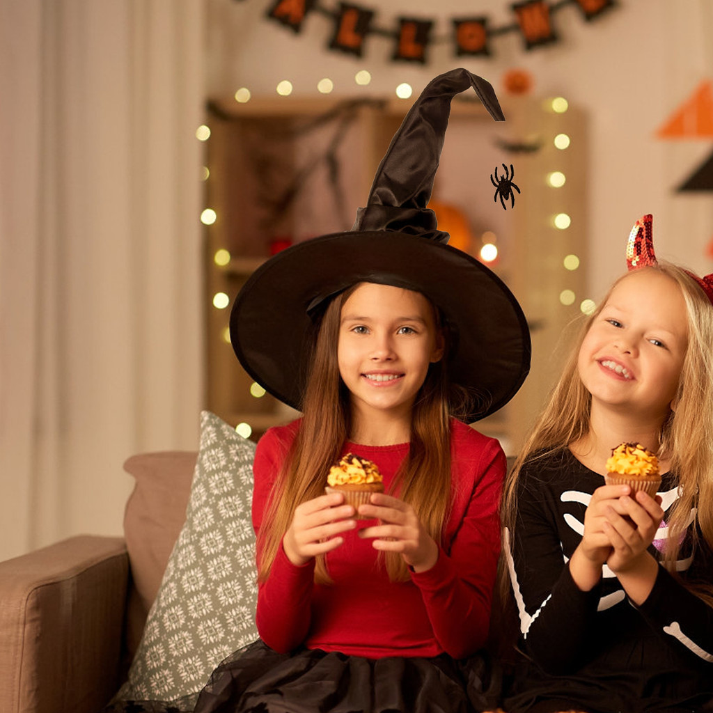 หมวกแม่มดพิศวงสําหรับฮาโลวีน | ตกแต่งแมงมุมสีดําพร้อมปีกแข็งแรงอุปกรณ์เสริมเครื่องแต่งกายปาร์ตี้ที่สมบูรณ์แบบสําหรับธีมการชุมนุมและอุปกรณ์ประกอบฉากภาพ