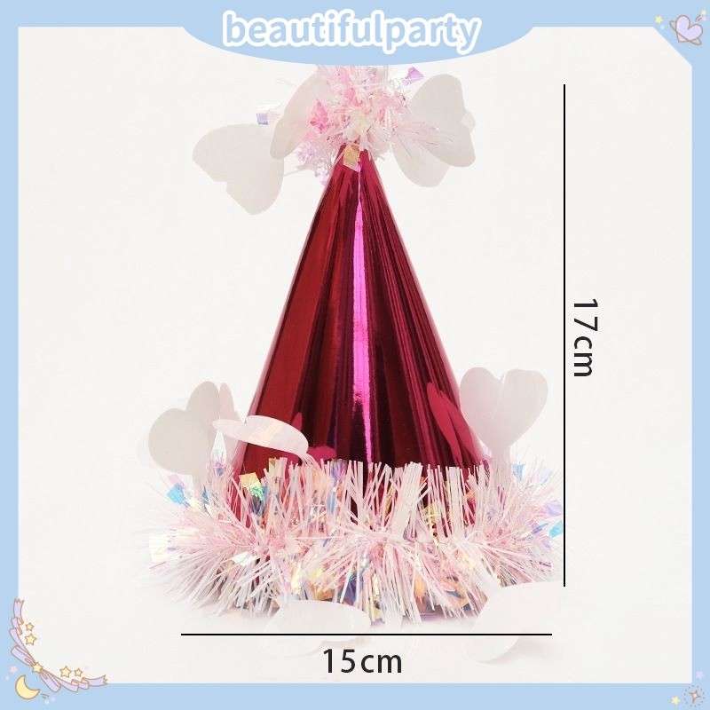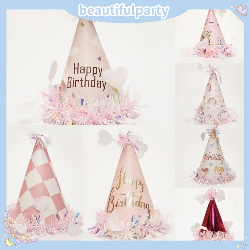 ใหม่หมวกวันเกิดปาร์ตี้เค้กตกแต่งหมวกเหมาะสําหรับผู้ใหญ่และเด็ก เรนซิลค์ ตกแต่งงานเลี้ยงวันเกิดหมวกแหลม