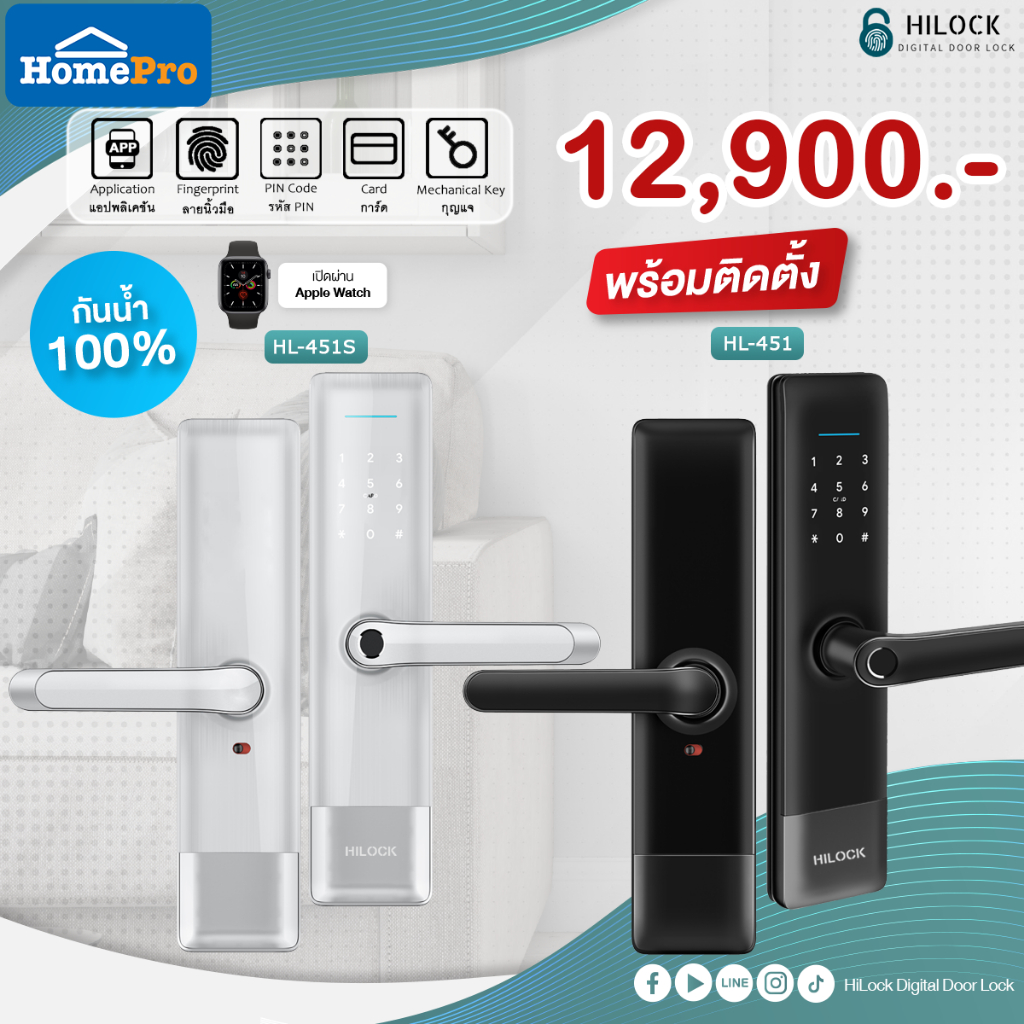 (กันน้ำ 100%) HiLock Digital Door Lock : 9 ระบบ รุ่น HL-451 สีดำและสีเงิน (พร้อมติดตั้ง)