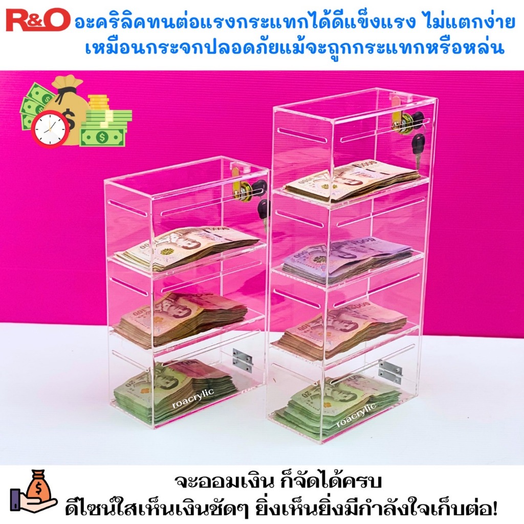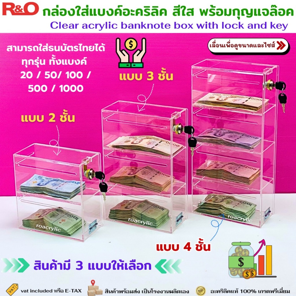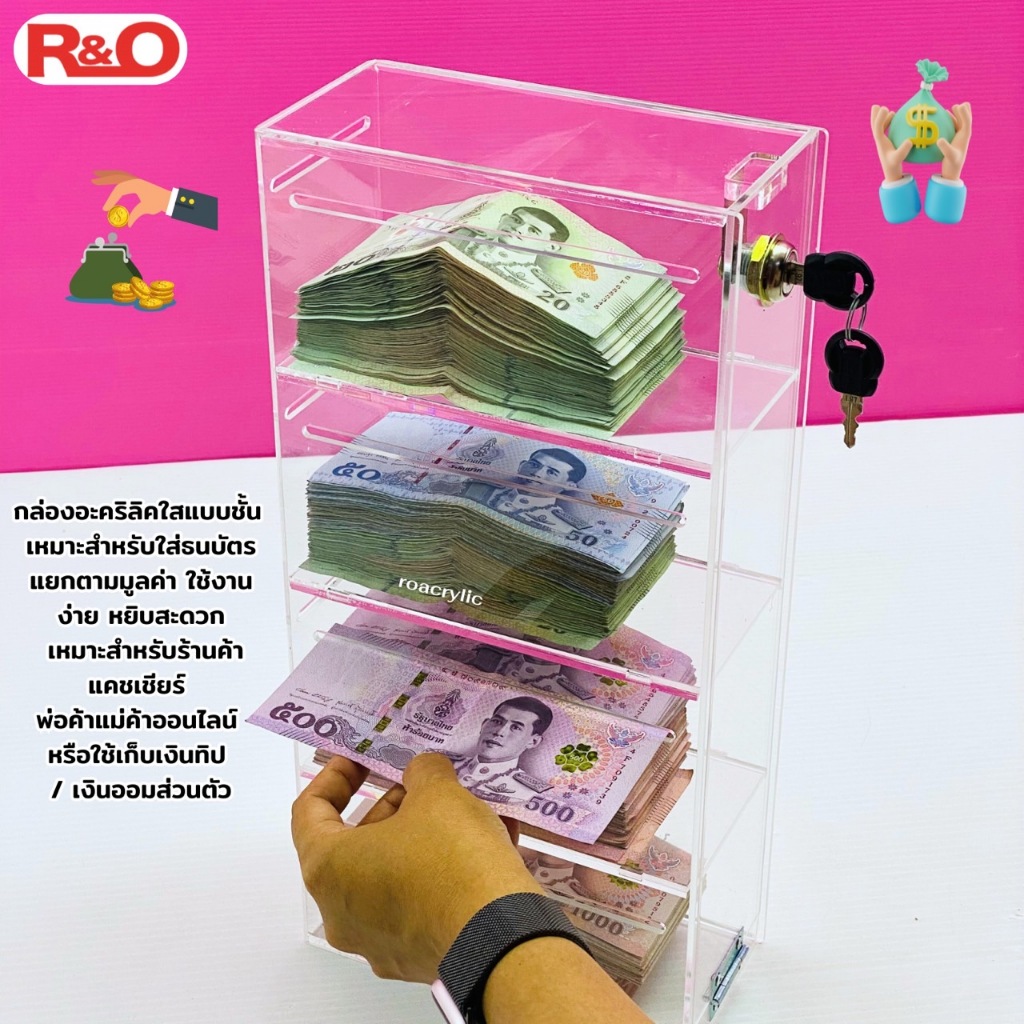 [พร้อมส่ง] กล่องใส่แบงค์อะคริลิคใส พร้อมกุญแจล็อก | 2 / 3 / 4 / 5ชั้น | ใส่ธนบัตรได้ทุกชนิด แยกแบงค์แสดงโชว์เงิน ออมเงิน