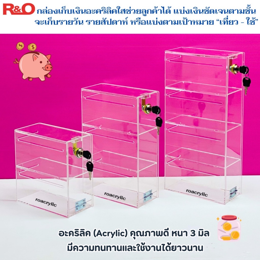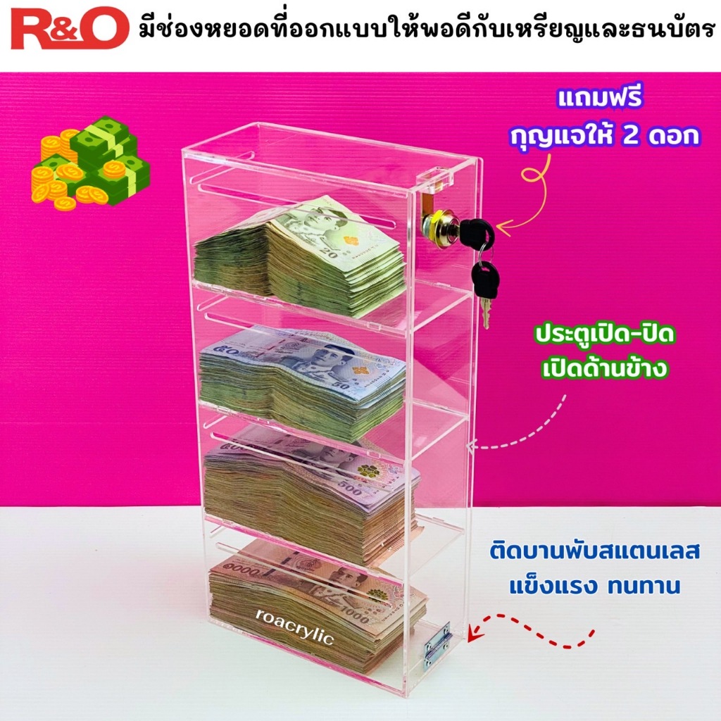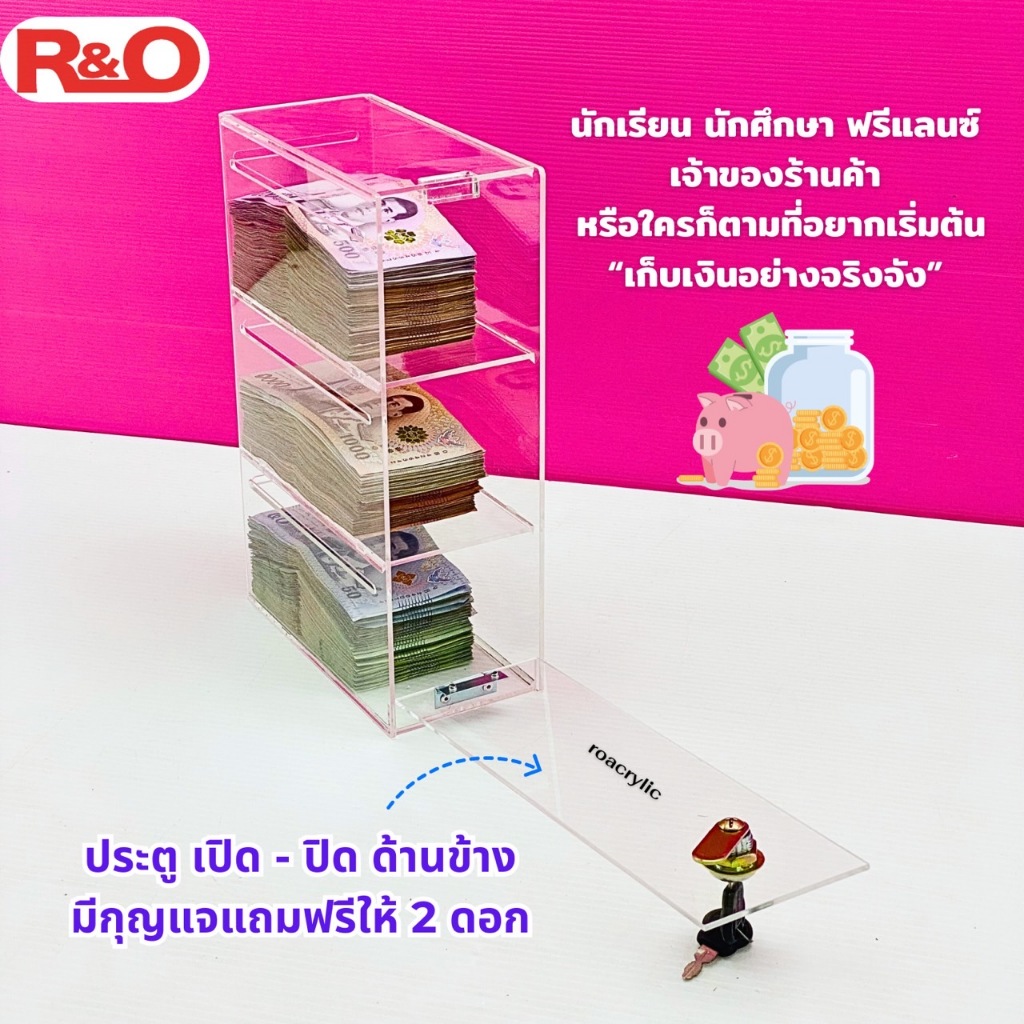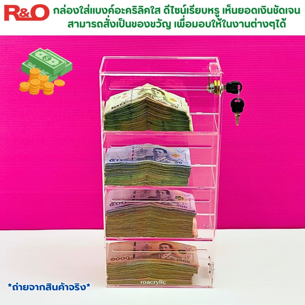[พร้อมส่ง] กล่องใส่แบงค์อะคริลิคใส พร้อมกุญแจล็อก | 2 / 3 / 4 / 5ชั้น | ใส่ธนบัตรได้ทุกชนิด แยกแบงค์แสดงโชว์เงิน ออมเงิน