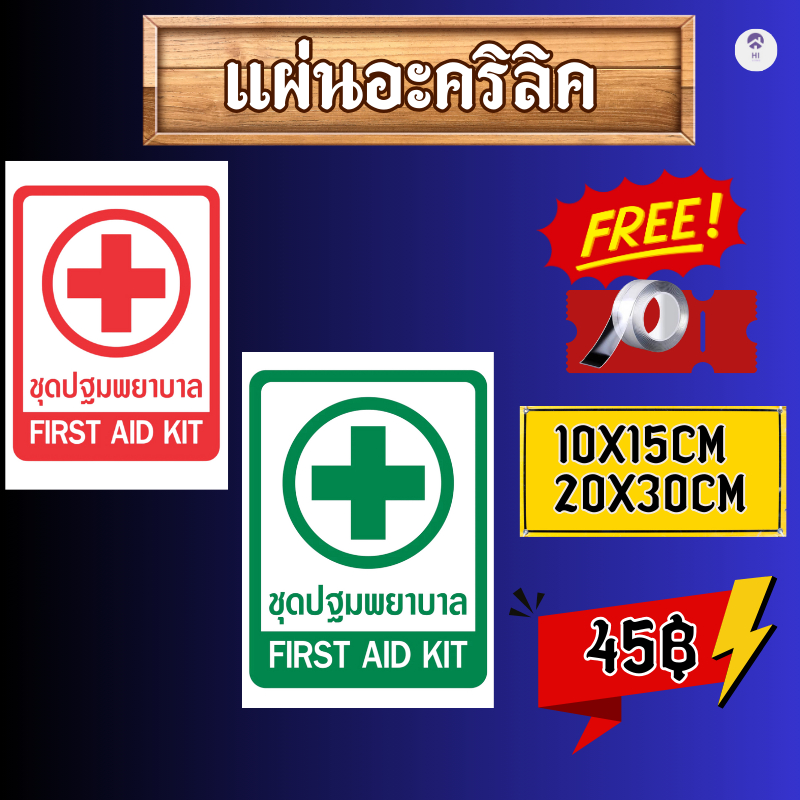 (แผ่นอะคริลิค) ชุดปฐมพยาบาล ป้ายชุดปฐมพยาบาล ชุดปฐมพยาบาล ป้ายคลินิก ป้ายร้านยา
