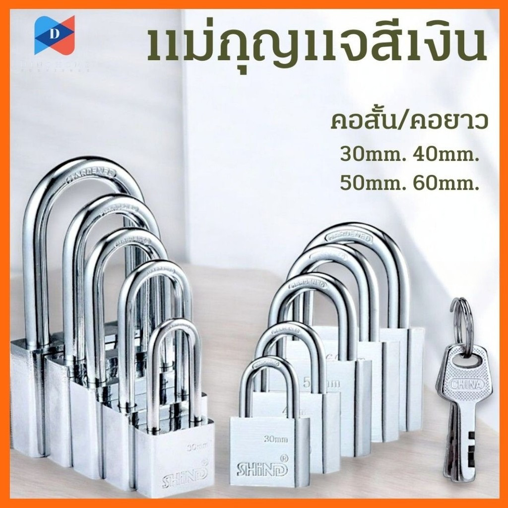⭐️ขายปลีก/ส่ง⭐️แม่กุญแจสีเงิน (แถมลูกกุญแจ 3ดอก) ตัวล็อคประตู หัวล็อค กันขโมย 30/40/50/60 mm. #AI-0020