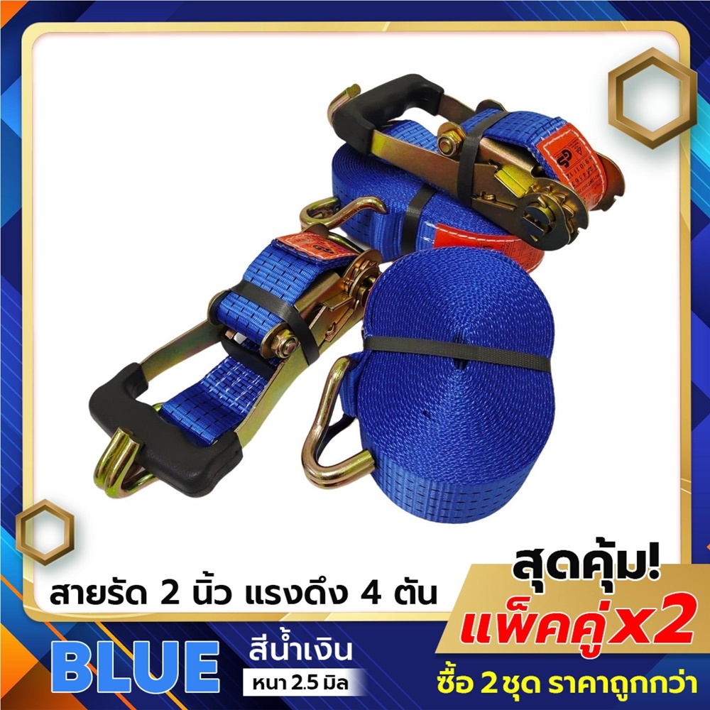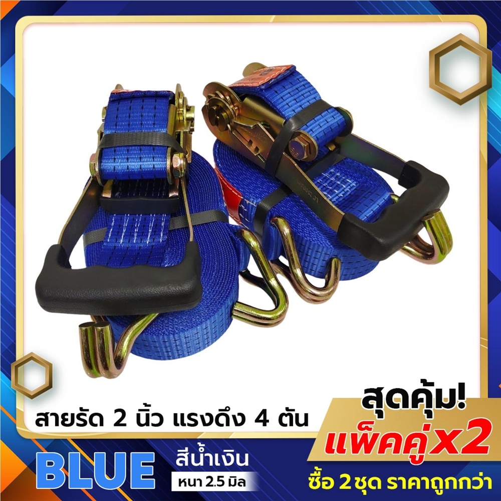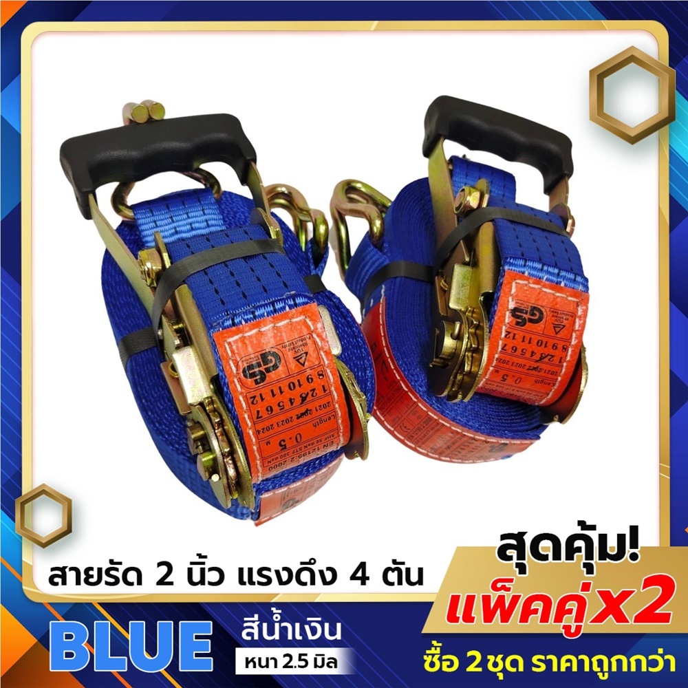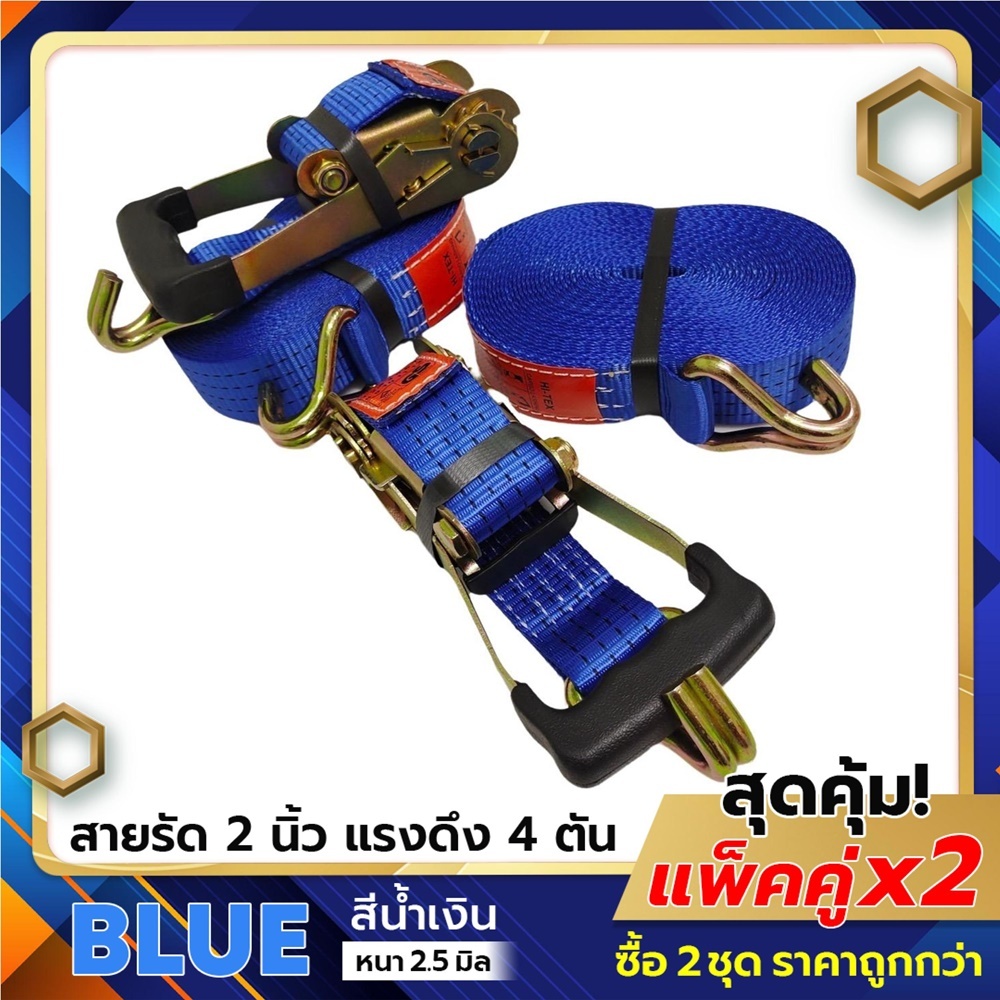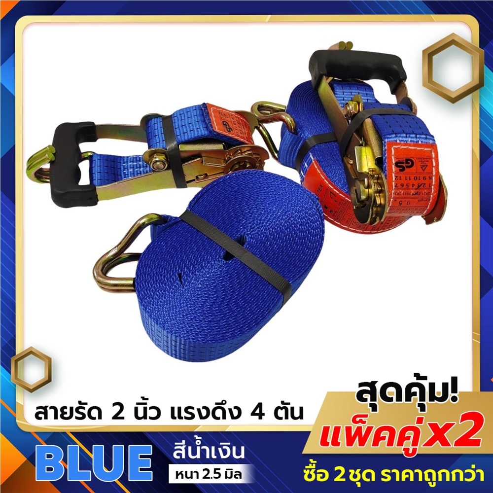 ((2 ชุด) 2 “”4 ตัน เข็มขัดสายยาง สีฟ้า SAFETEX เข็มขัดรถบรรทุก เข็มขัดโพลีเอสเตอร์ 100%