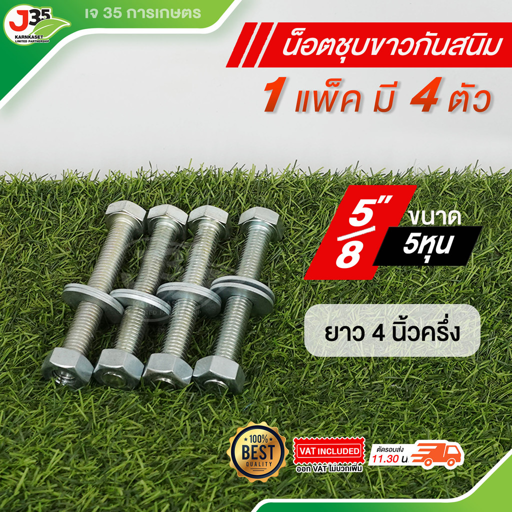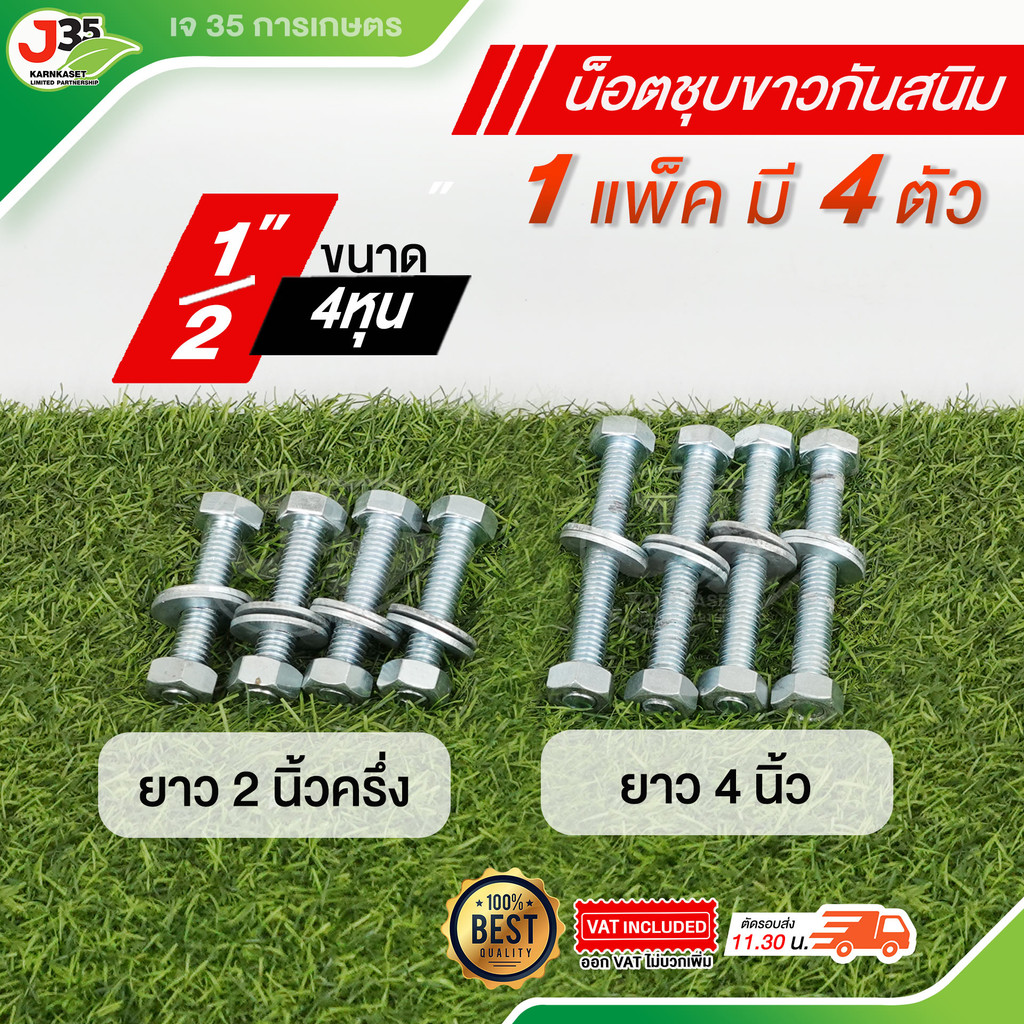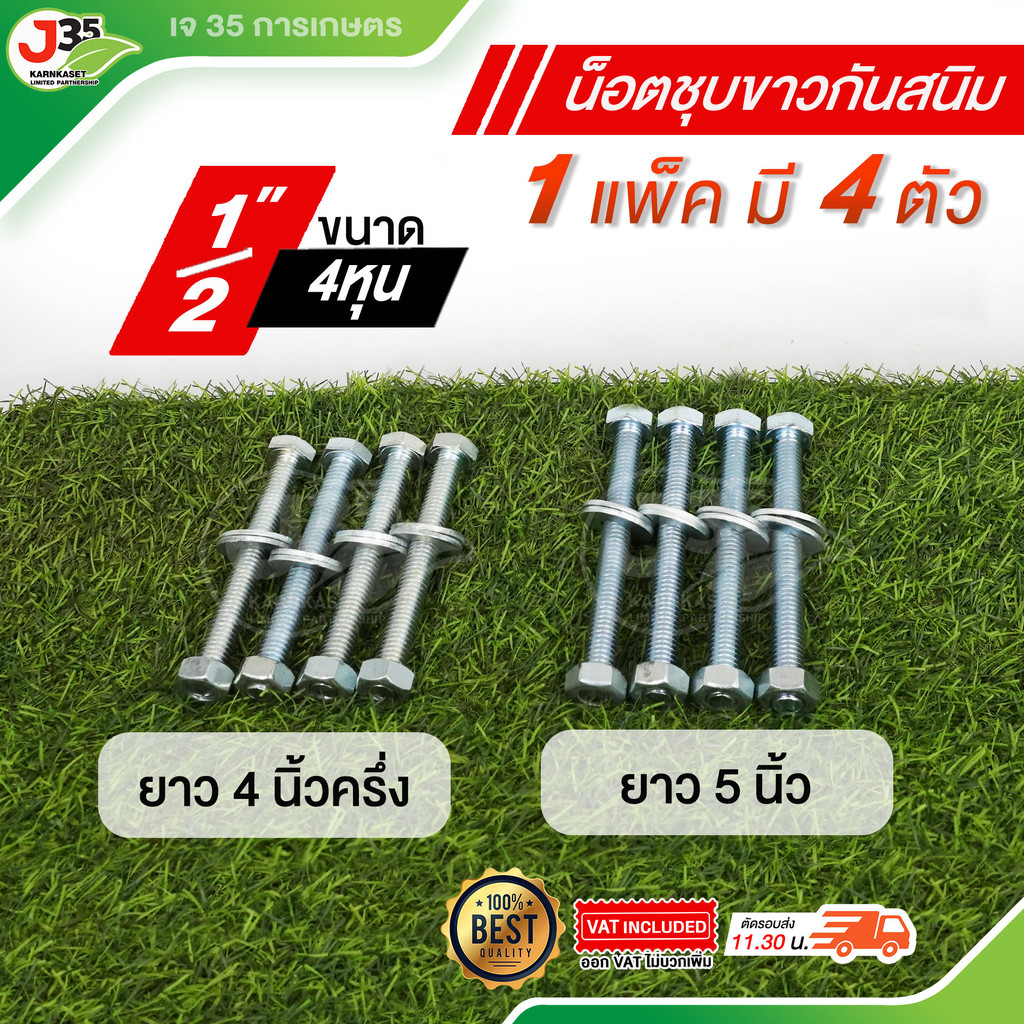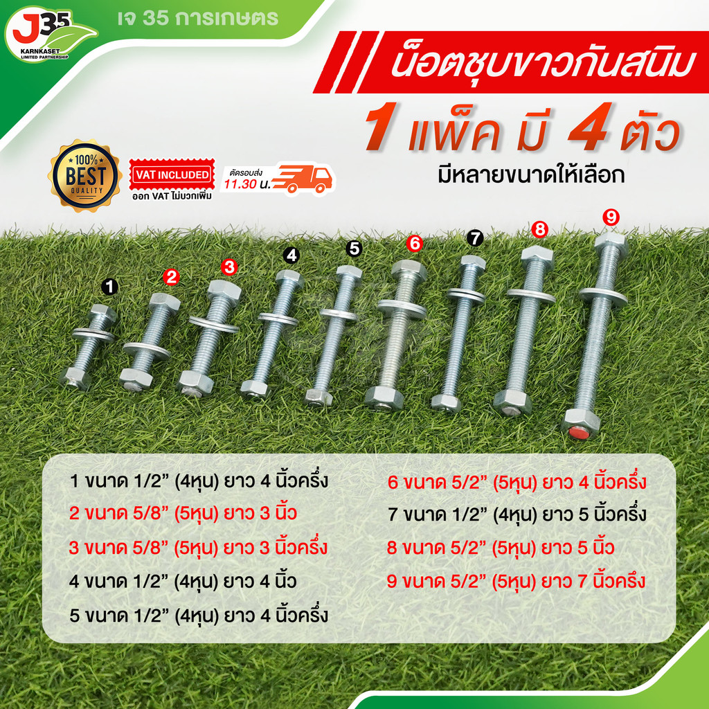 (1แพ็คมี4ตัว)น็อต 1/2 ,5/8 ความยาว 3นิ้ว 31/2นิ้ว 4นิ้ว 41/2นิ้ว 5นิ้ว 71/2นิ้ว น็อตชุบขาวกันสนิม
