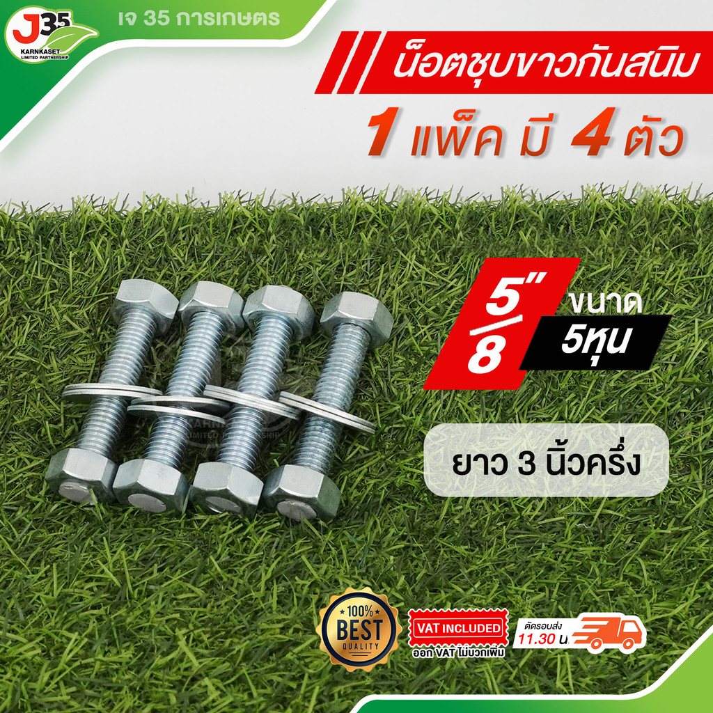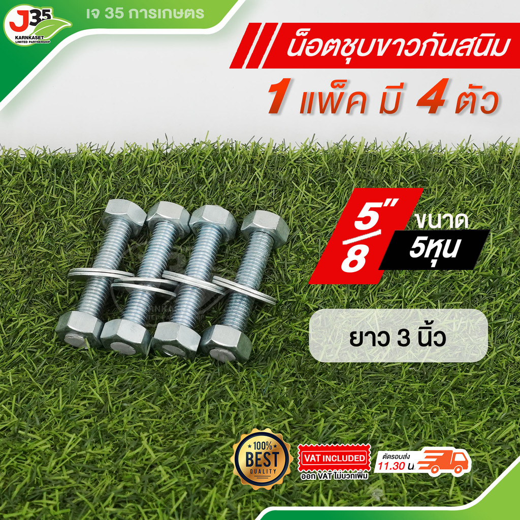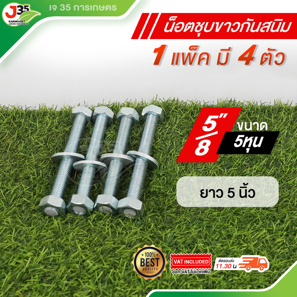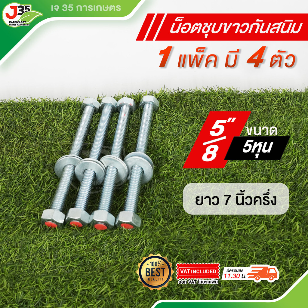 (1แพ็คมี4ตัว)น็อต 1/2 ,5/8 ความยาว 3นิ้ว 31/2นิ้ว 4นิ้ว 41/2นิ้ว 5นิ้ว 71/2นิ้ว น็อตชุบขาวกันสนิม