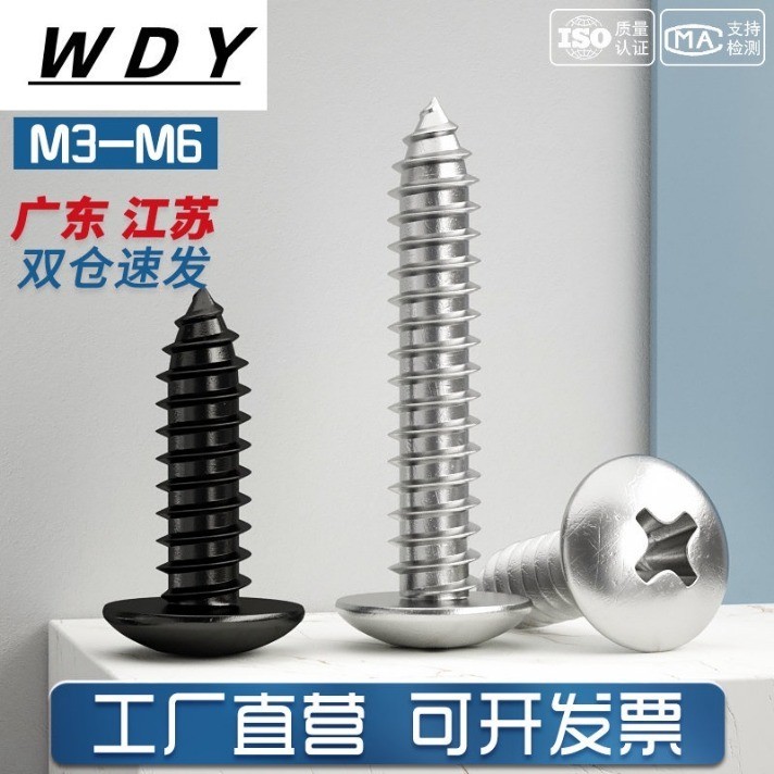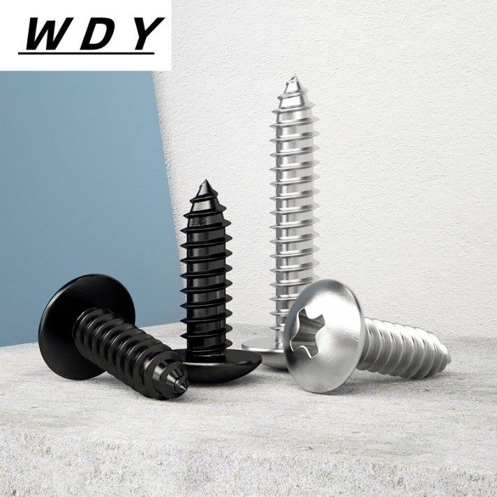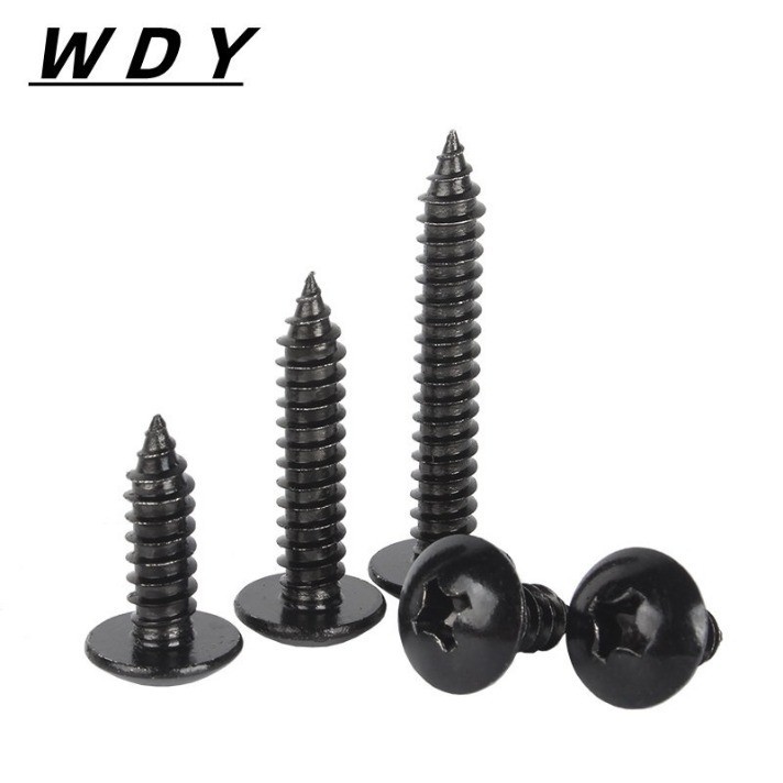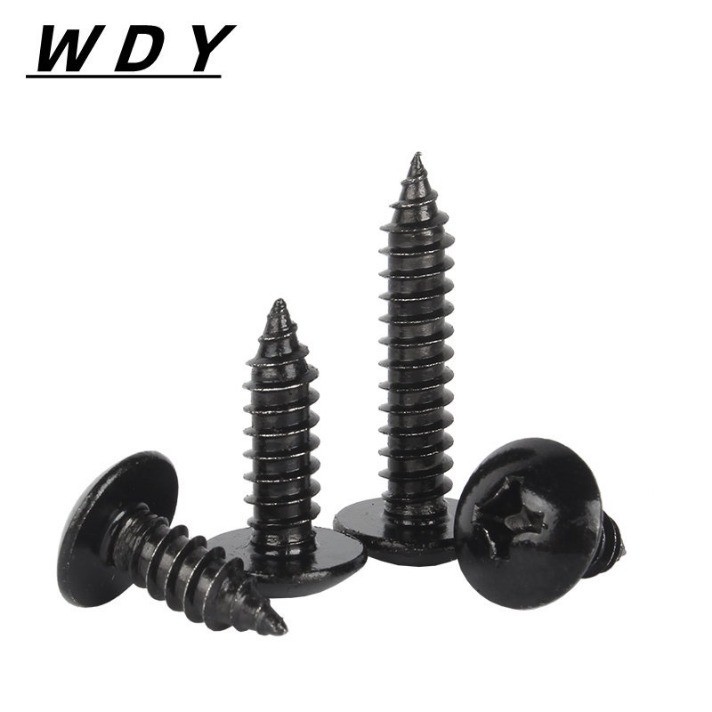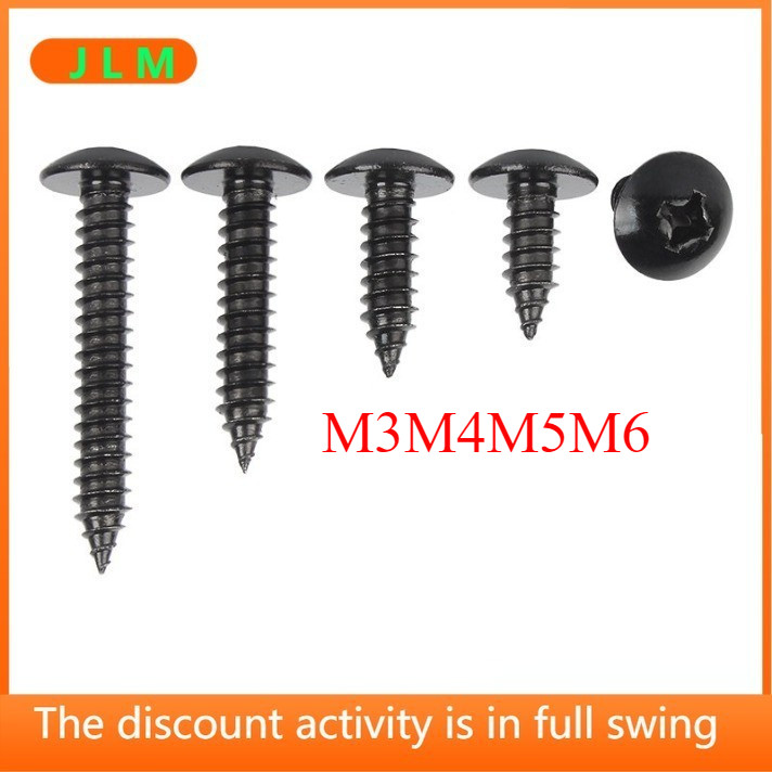 ((JLML) สแตนเลสสีดํา 304 หัวแบนขนาดใหญ่สกรูแตะตัวเอง M3M4M5M6 หัวร่มหัวกลม Phillips สกรูแตะตัวเองไม้ S