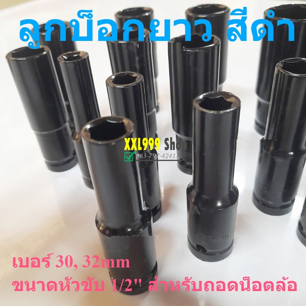 (4หุน) สีดำ เบอร์ 30-32mm ลูกบล็อกยาว ลูกบล็อก 6 เหลี่ยมยาว 1/2″ ลูกบล็อกลม ถอดน็อตล้อ