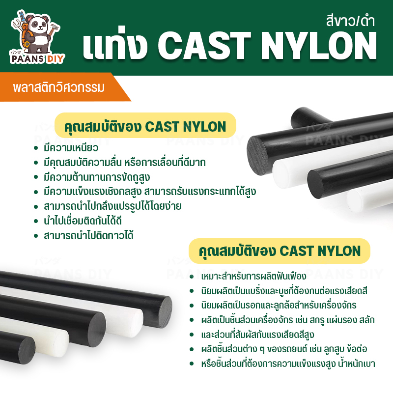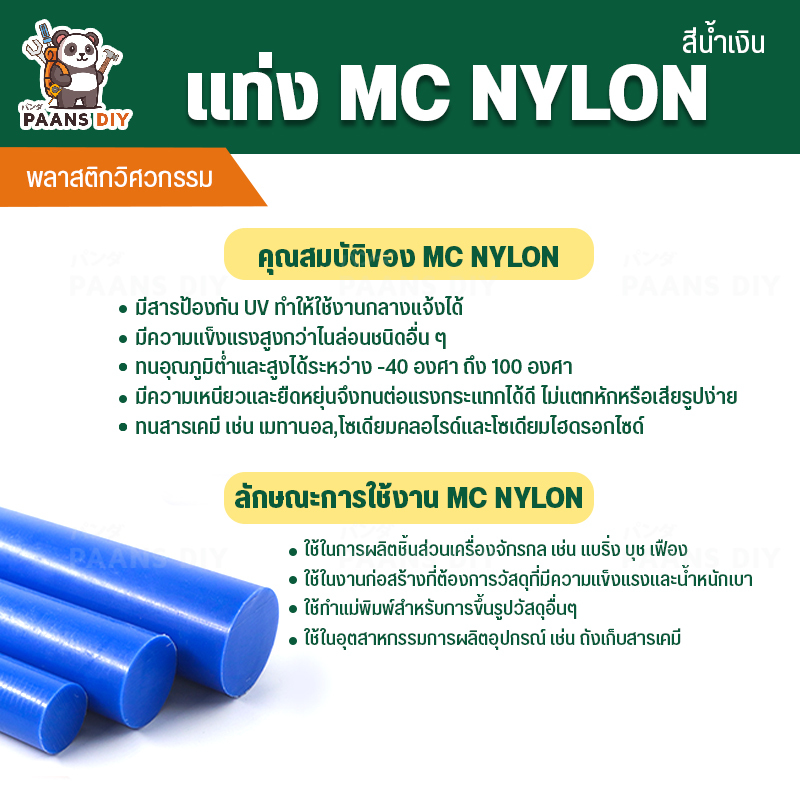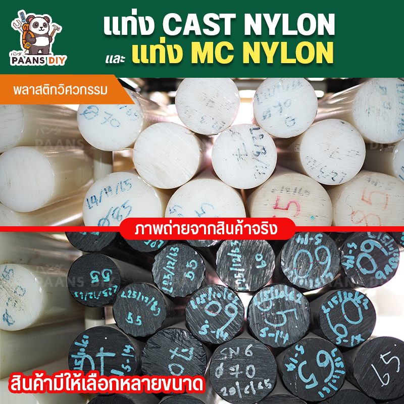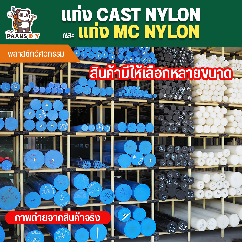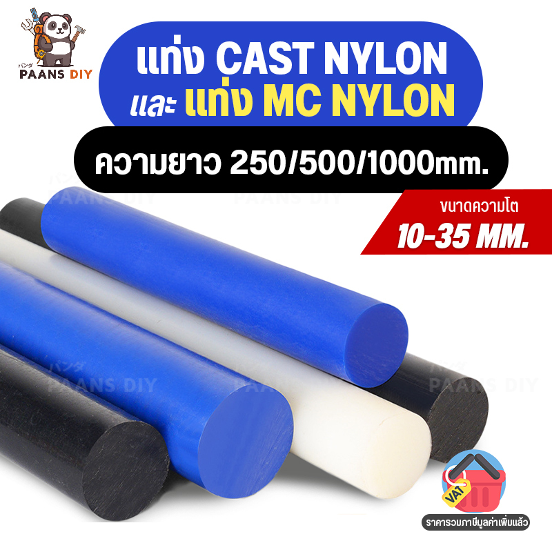 (10-25มิล) แท่งเพลากลม MC Nylon Cast Nylon เอ็มซีไนล่อน คาสไนล่อน พลาสติกวิศวกรรม สีน้ำเงิน/สีขาว/สีดำ
