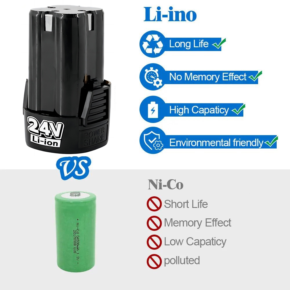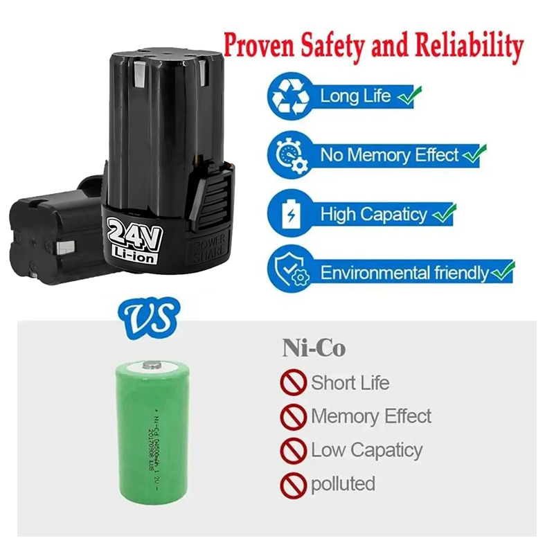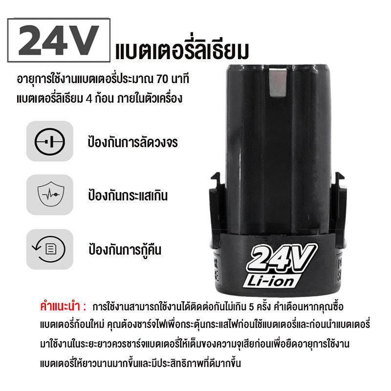 (2 ก้อน) แบต แบตเตอรี่ สว่านไร้สาย สว่าน 24V Lithium-ion Battery แบตลิเธียมไอออน ทรงสี่เหลี่ยม 24V-2PCS แบตเตอรี่ลิเธียม