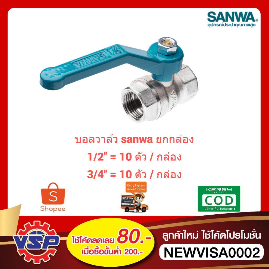 ‼️ยกกล่อง‼️ SANWA บอลวาล์ว ทองเหลือง ขนาด 1/2” และ 3/4” 1 กล่อง / 10 ตัว ‼️ยกกล่อง‼️