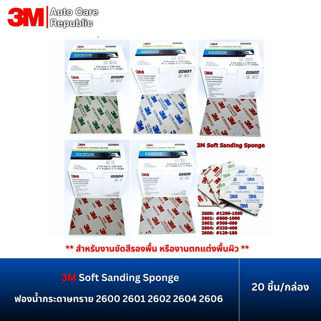 ( 1กล่อง/20 ชิ้น) 3M Soft Sanding Sponge ฟองน้ำกระดาษทราย 02600 02601 02602 02604 02606