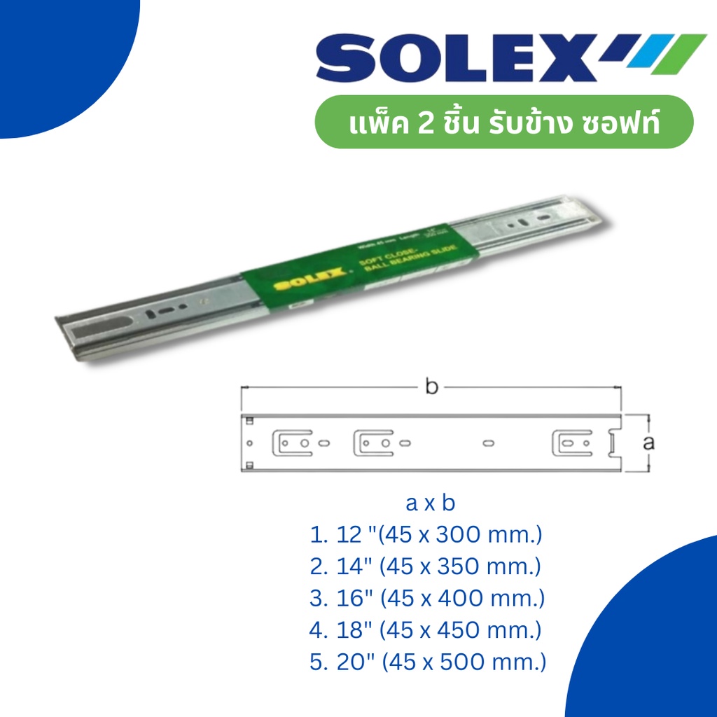 SOLEX รางลิ้นชักลูกปืนรับข้างแบบ 2 ตอน ปิดนุ่มนวล 45 (SOLEX 2-FOLDED BALL BEARING DRAWER SLIDE, SOFT CLOSING)
