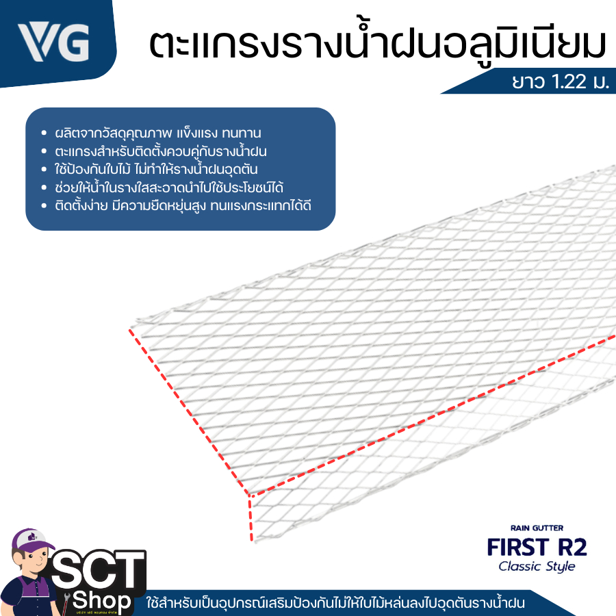 VG ตะแกรงรางน้ำฝนอลูมิเนียม ยาว 1.22 ม. รุ่น FIRST R2 ช่วยป้องกันใบไม้ ไม่ทำให้รางน้ำฝนอุดตัน ระบายน้ำได้ดี