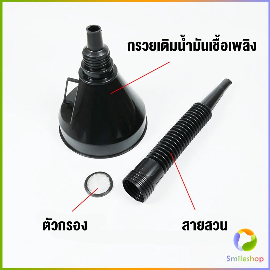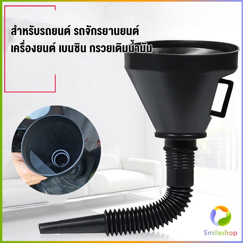 Smileshop กรวยยาว ปลายงอได้ สำหรับ กรอกน้ำ น้ำมัน ใช้ได้ทั้งงานบ้าน และงานช่าง Plastic funnel