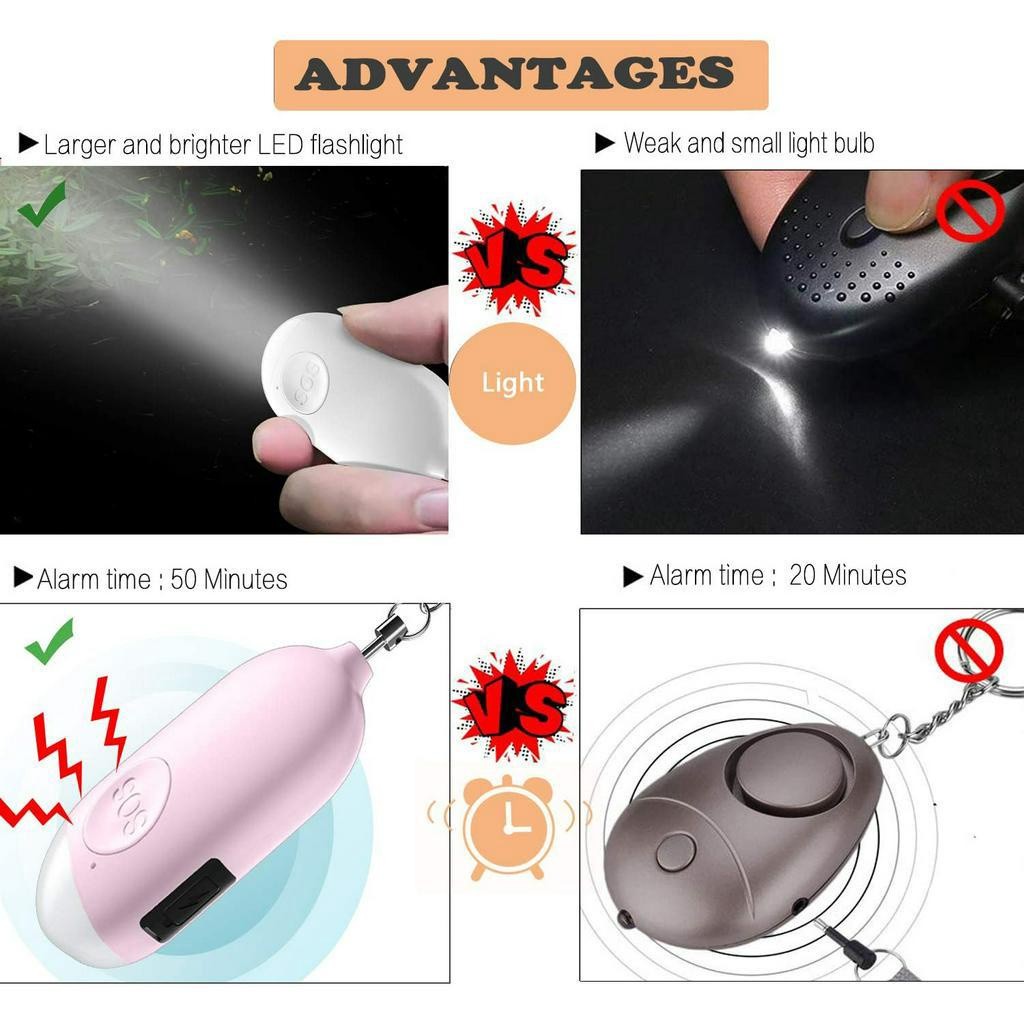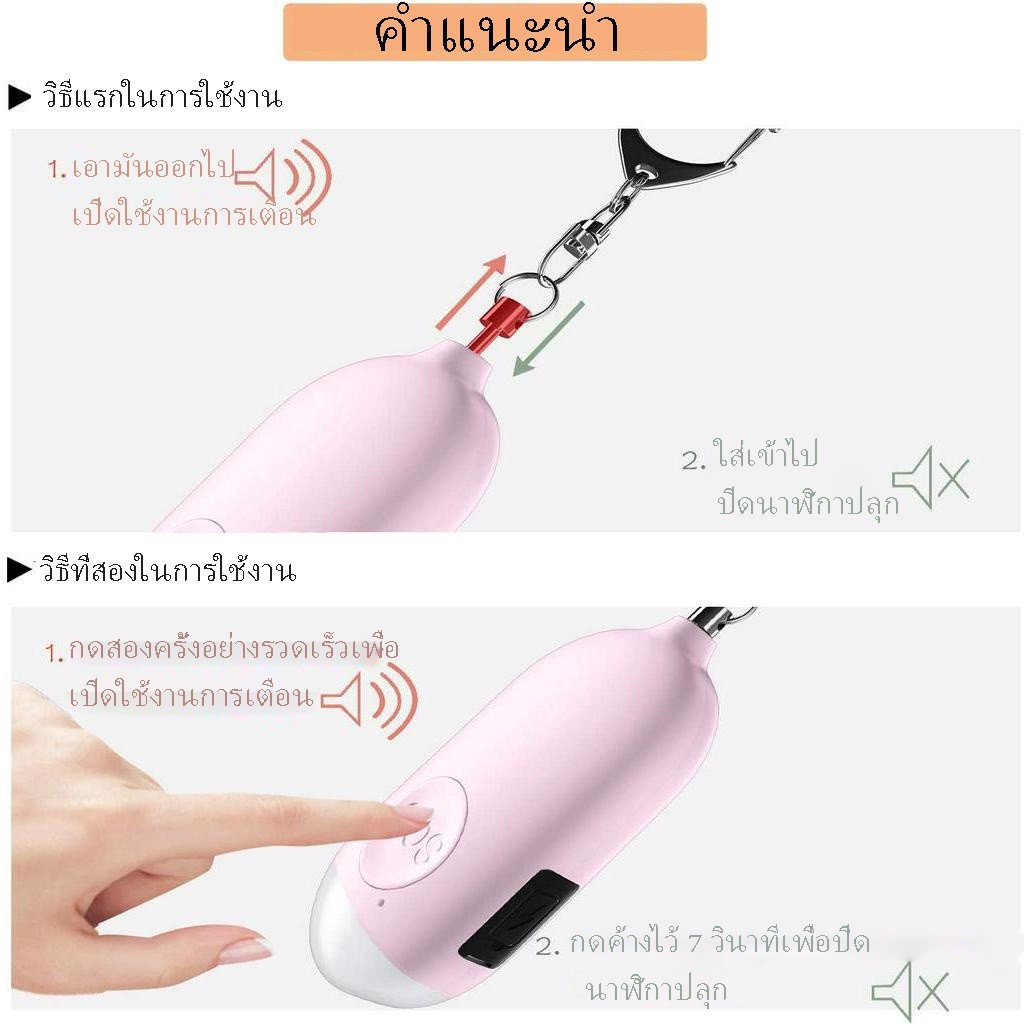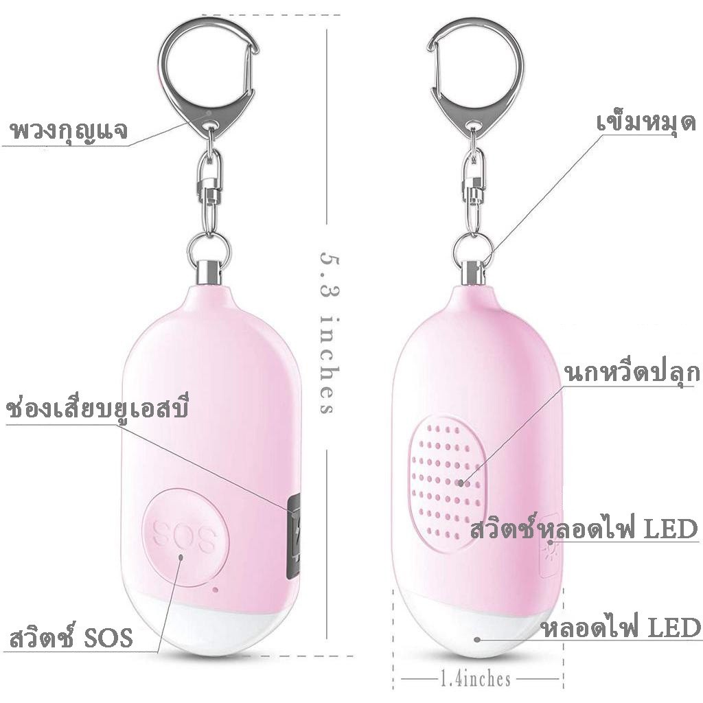 พวงกุญแจปลุกฉุกเฉิน sos Self-defense Wireless Alarm USB ชาร์จด้วยแสงเสียงดังสําหรับผู้หญิง