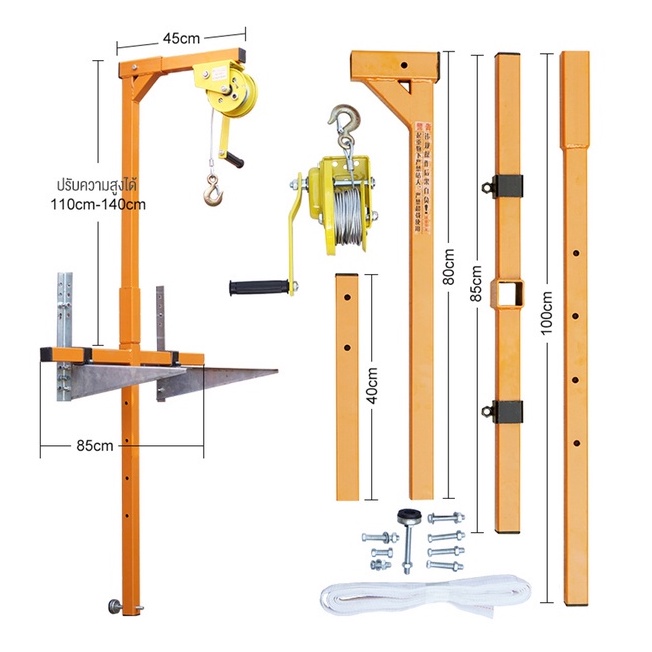 อุปกรณ์ยกแอร์ เครื่องมือยกการติดตั้งภายนอก การพับ,ยกน้ำหนัก 200กก รอกยาว 20 เมตร สองทาง ล็อคตัวเอง