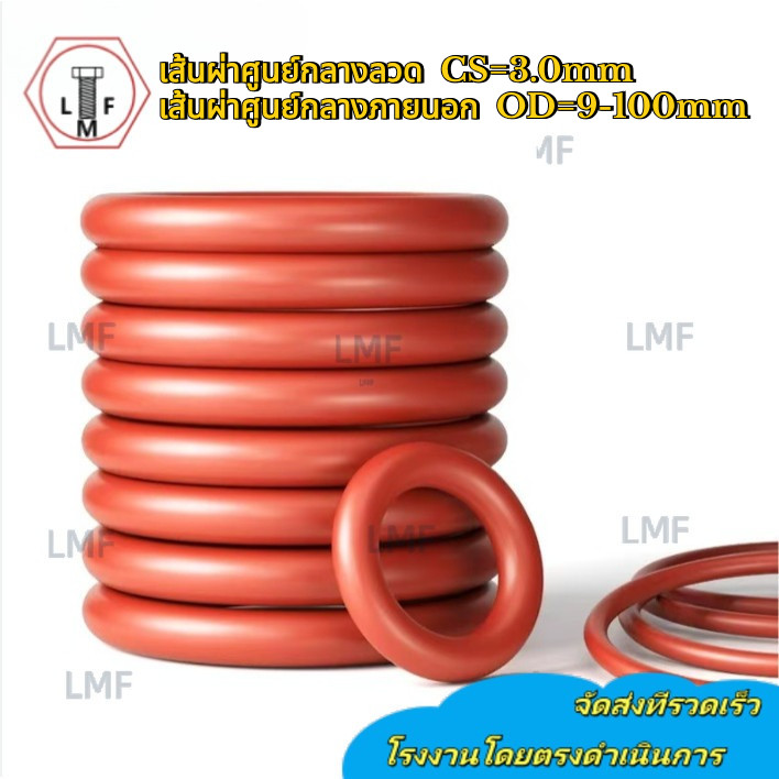 แหวนซีลโอริงซิลิโคนสีแดง CS3 มม.* OD9-100 มม.แหวนกันน้ําทนอุณหภูมิสูงปิดผนึกส่วนประกอบMB-LMF-01