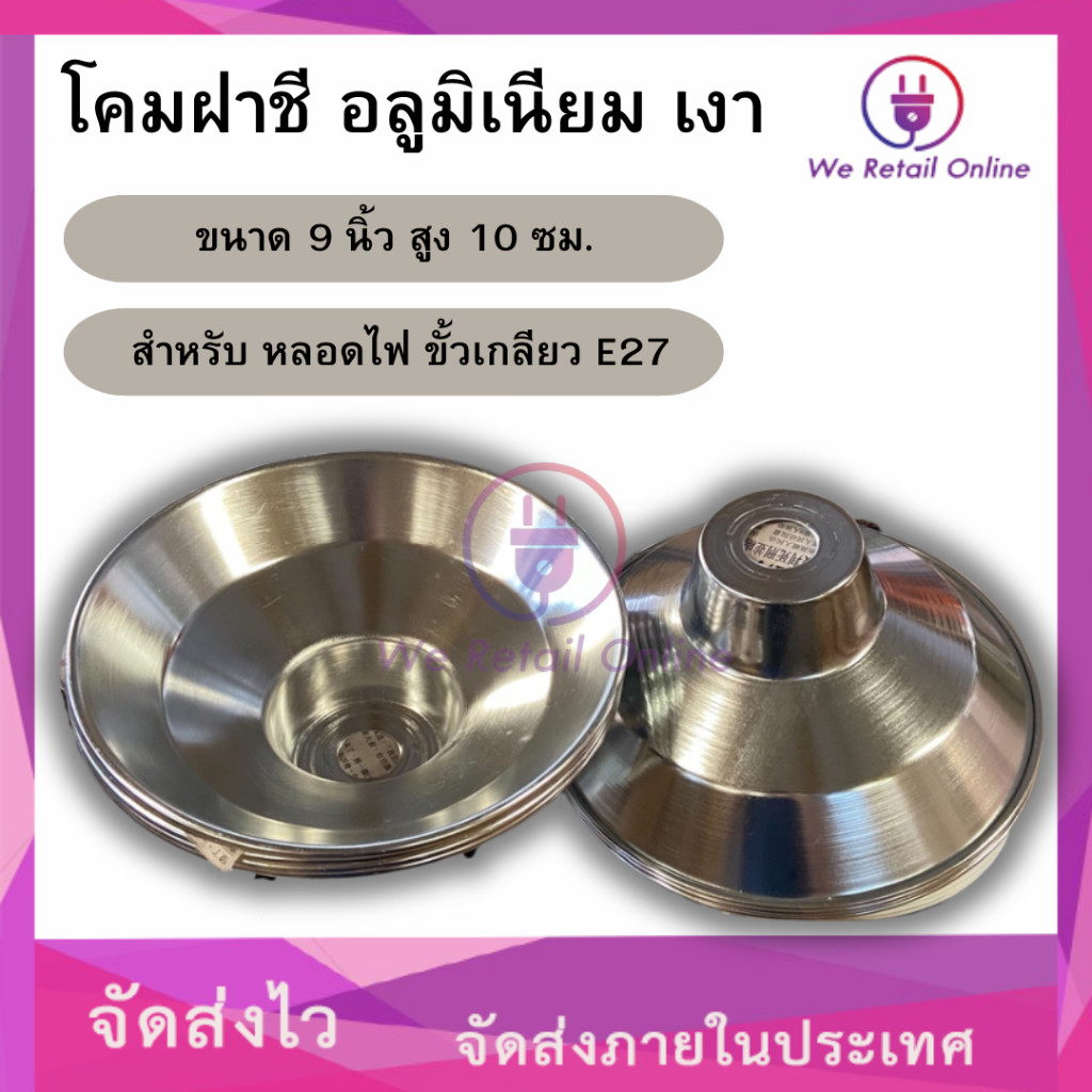 โคมฝาชี อลูมิเนียม เงา ขนาด 9 นิ้ว สูง 10 ซม. ปากบาน สำหรับ หลอดไฟ ขั้วเกลียว E27(*5-5-05955)