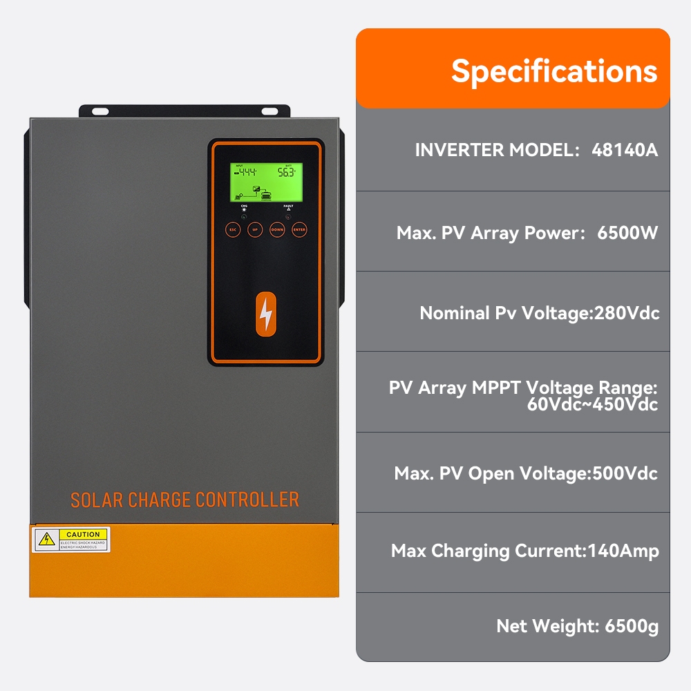 Fast Chargingpowmr 140A Mppt Charge controller เฉพาะรองรับแบตเตอรี่ 48V, แรงดันไฟฟ้า Pv สูงสุด 280VDC สูงสุด Pv Power 6500w