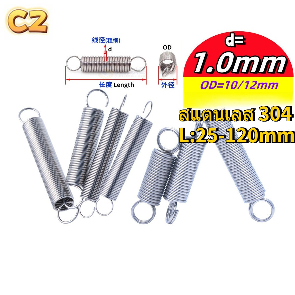 CZ สปริงดึงสแตนเลส 304 d=1.0มม. OD=10/12มม. ความยาวปรับได้ L:25 – 120มม. ห่วงสำหรับดึง/แขวน เครื่องมือช่าง งานอุตสาหกรรม สินค้าใหม่เกรดA ส่งเร็วทั่วประเทศ(WDY-XDT-TH)
