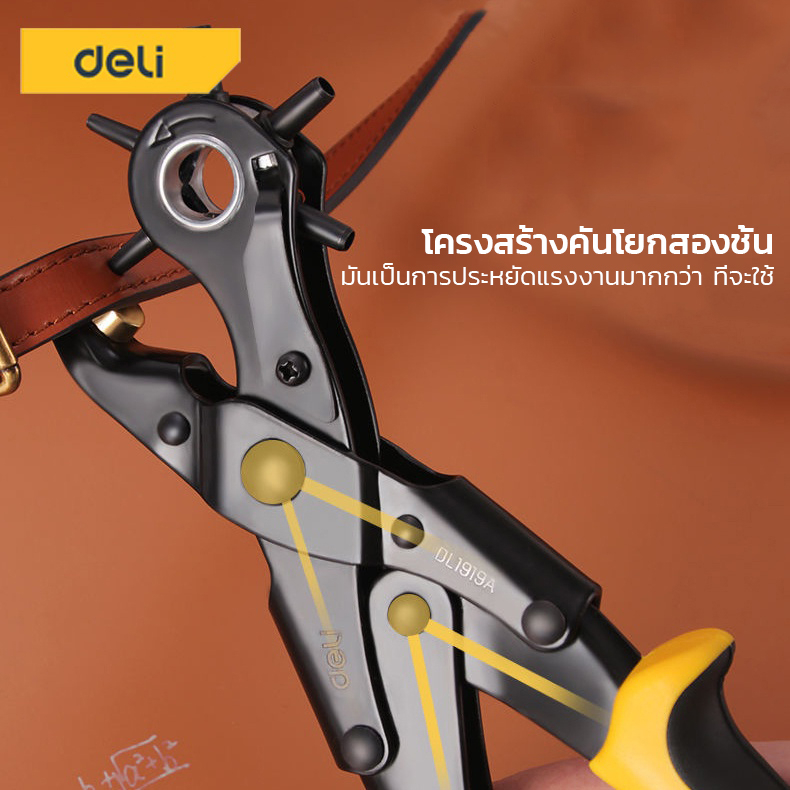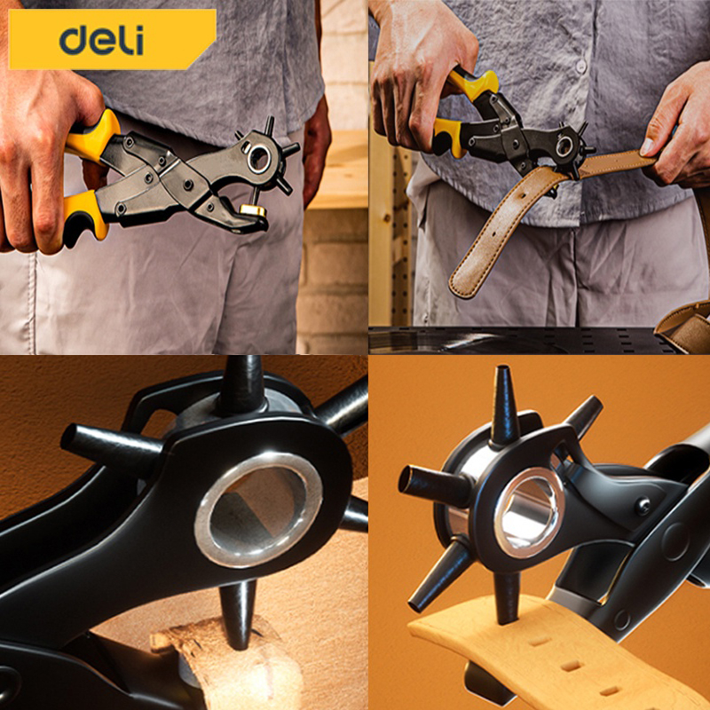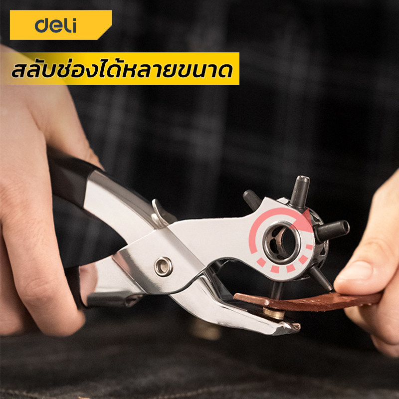 Deli คีมเจาะรูเข็มขัด คีมเจาะ ที่เจาะรูเข็มขัด 6ขนาด เจาะสายนาฬิกา พลาสติก หนังได้ ทนทาน Hole Punch