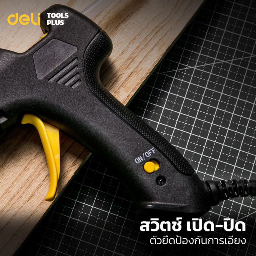 Deli ปืนยิงกาวร้อน ปืนยิงกาวไฟฟ้า สำหรับแท่งกาว 7 mm กาวร้อนอย่างดี พร้อมสวิตซ์ Hot Melt Glue Gun