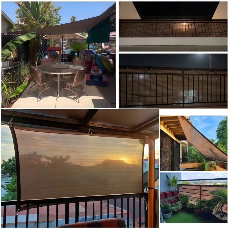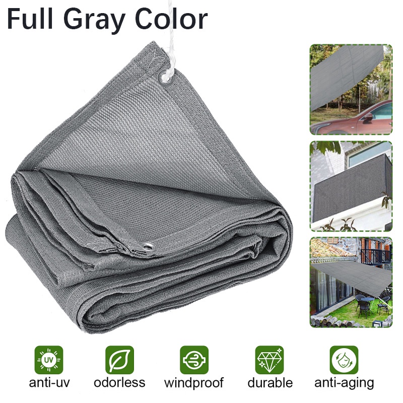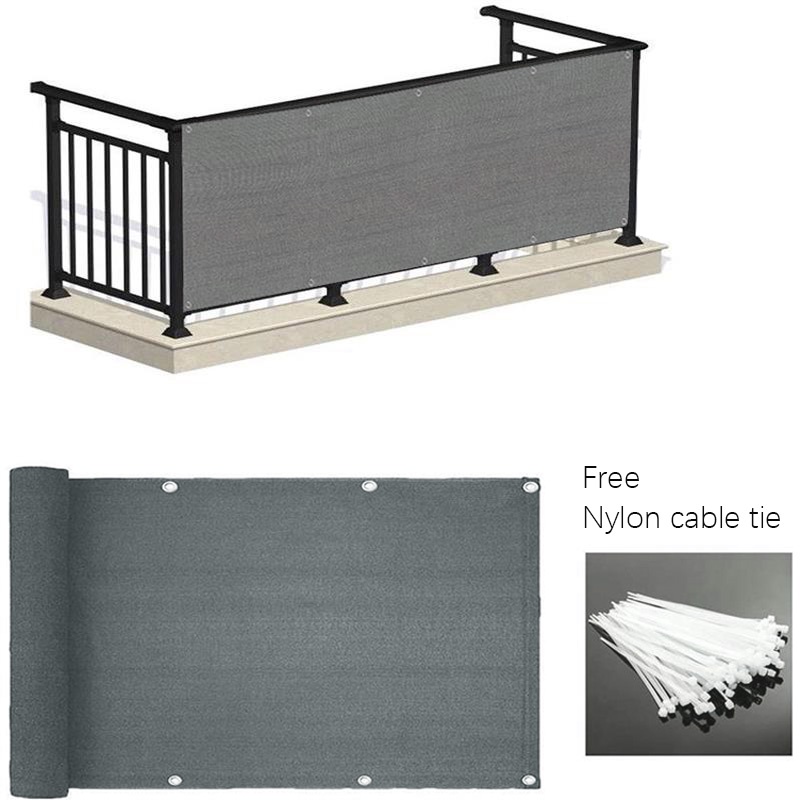 【Gift Cable Tie】ม่านบังแดด PE ตาข่ายสีเทาสําหรับระเบียงระเบียงบ้าน