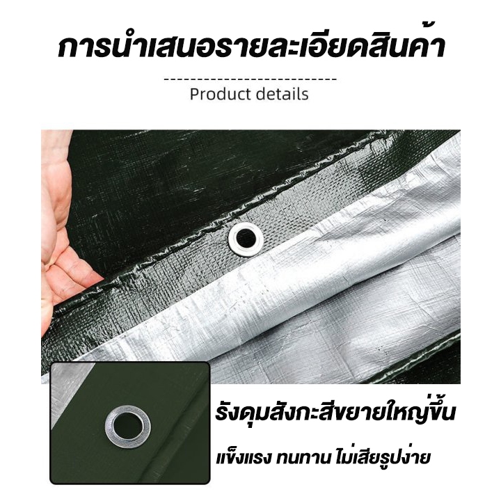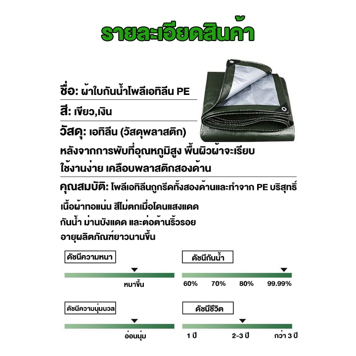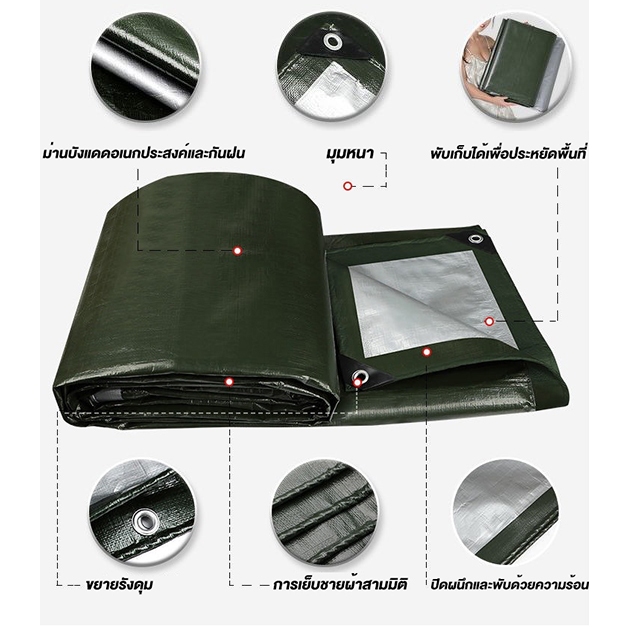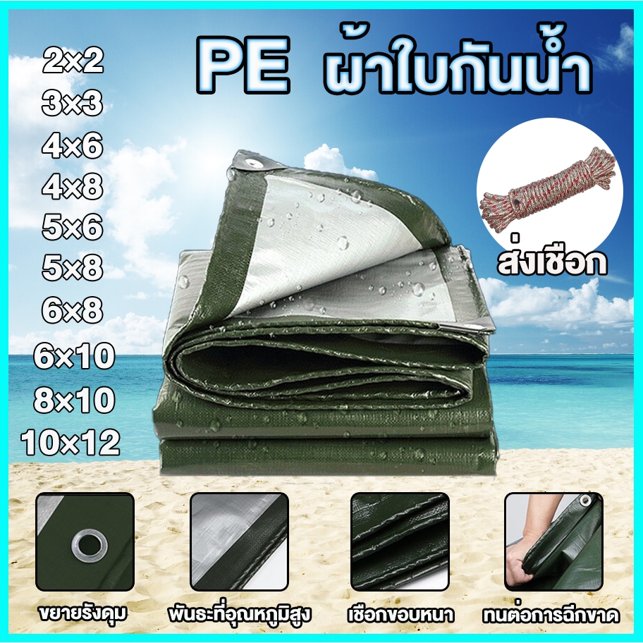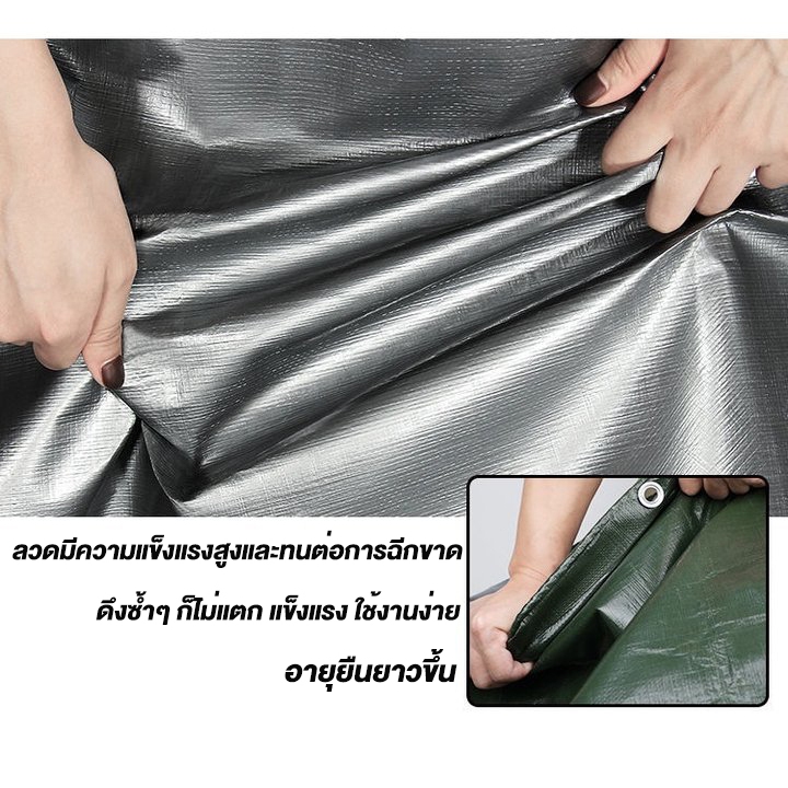(ฟรีเชือกยาว 10 เมตร) ผ้าใบกันน้ำกันแดดและกันฝนคุณภาพสูง กันน้ำ 100% วัสดุ PE (มีรู) เคลือบกันน้ำทั้งสองด้าน ผ้าใบพลาสติ
