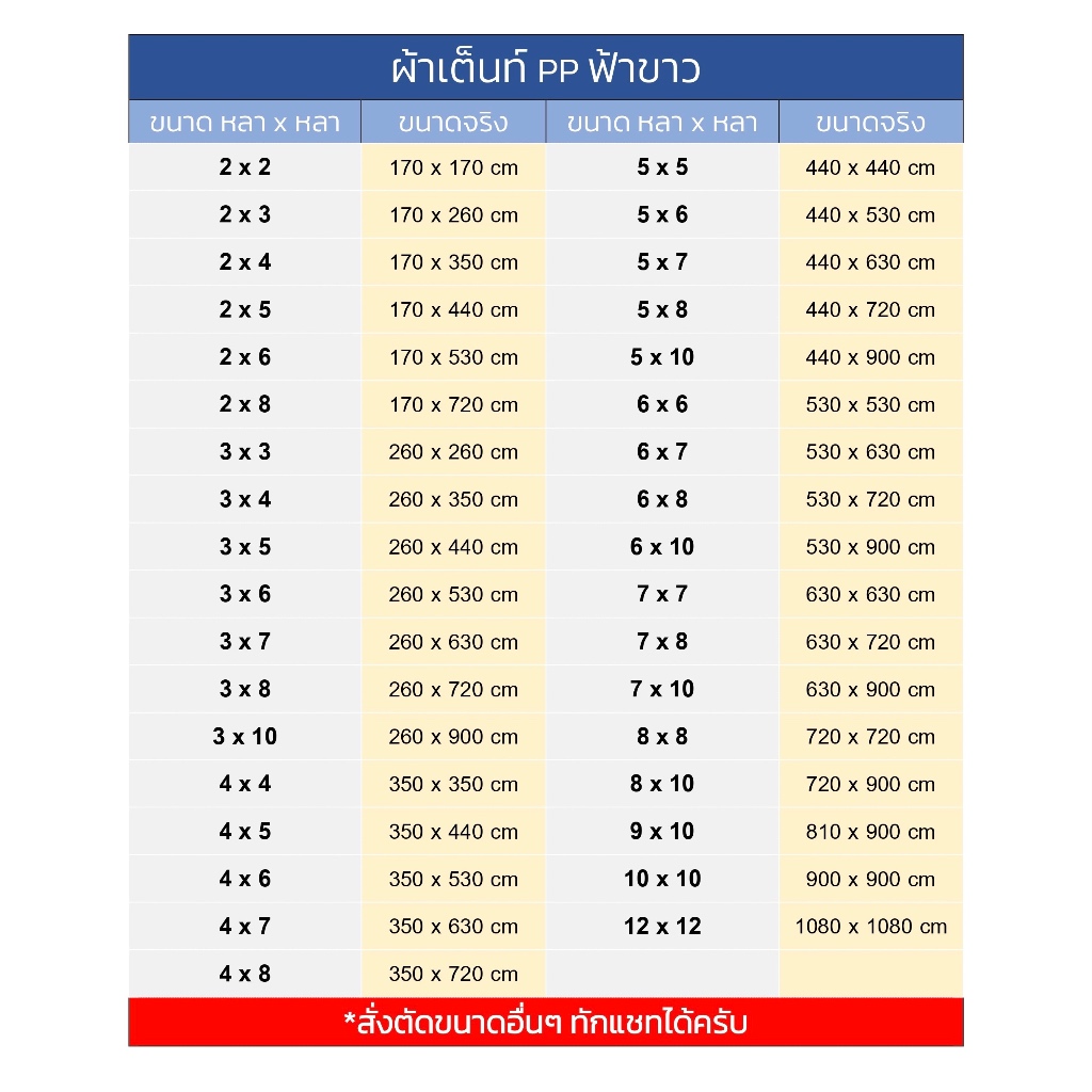 (ของไทย🇹🇭)ผ้าเต็นท์ฟ้าขาว ผ้าใบกันแดดฝน มีตาไก่ หนาพิเศษ ทนความร้อน *ขนาด หลาxหลา*