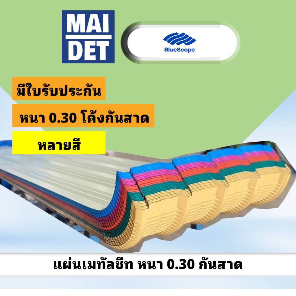 *อ่านคำอธิบายก่อนกดสั่งซื้อ* หลังคากันสาด ความหนา 0.25 มม หน้ากว้าง 76 ซม เมทัลชีท Bluescope
