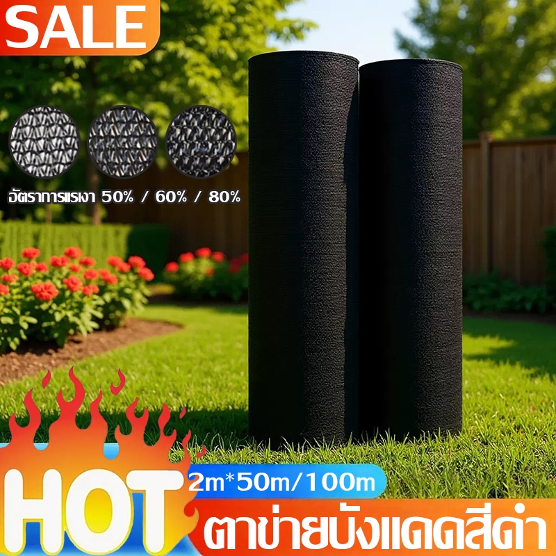 【การประกันคุณภาพ】ตาข่ายบังแดดสีดำ(2*10m/ 2*20m/ 2*50m/2*100m )อัตราบังแสง50% ทนทานยาวนาน ตาข่ายบังแดด สแลนกันแดด