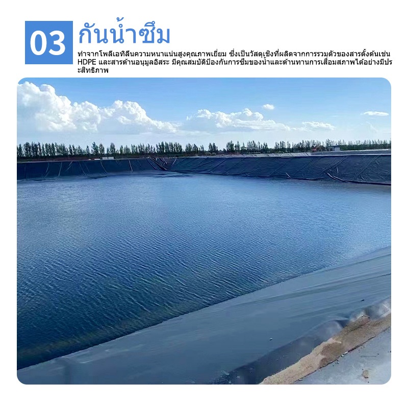 【300/500 ไมครอน】พลาสติกปูบ่อ ผ้ายางปูบ่อปลา HDPE เสริม UV หนา 0.5mm ทนทาน50ปี ออกแบบและทดสอบโดยวิศวกร นําเข้าจากเยอรมัน