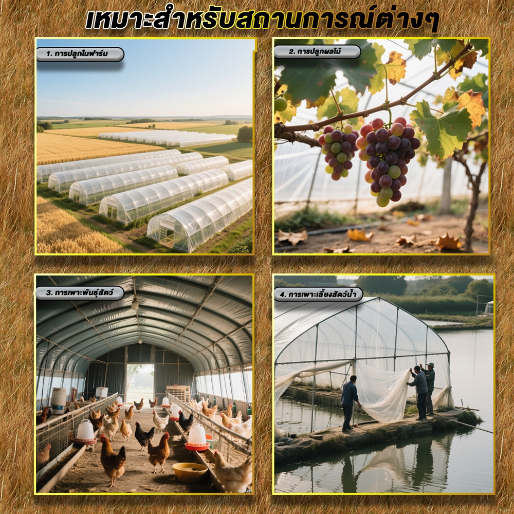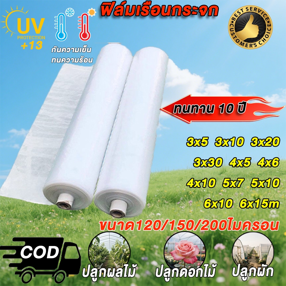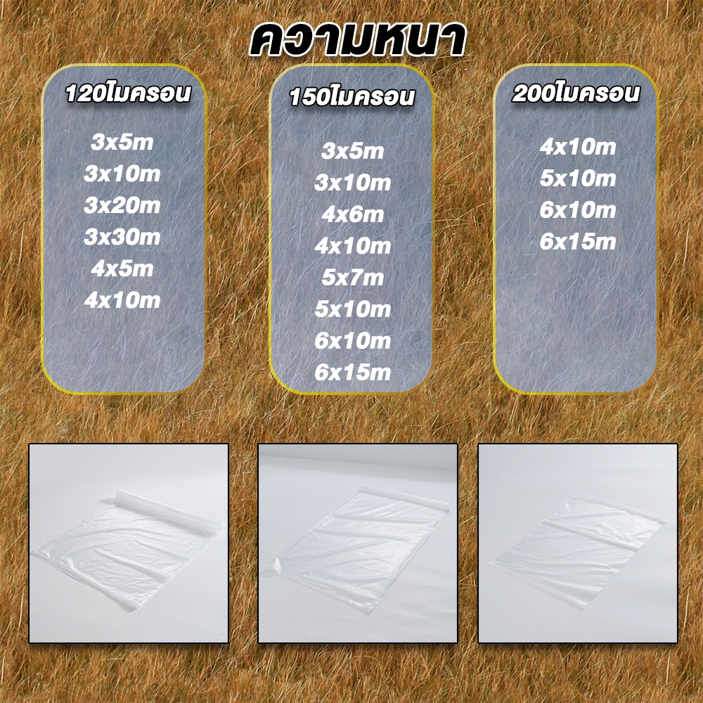 【หนา 120/150/200ไมครอน】พลาสติกคลุมโรงเรือน, พลาสติกใสกันฝน, พลาสติกPE,เรือนกระจกปกพลาสติก, UV+7%