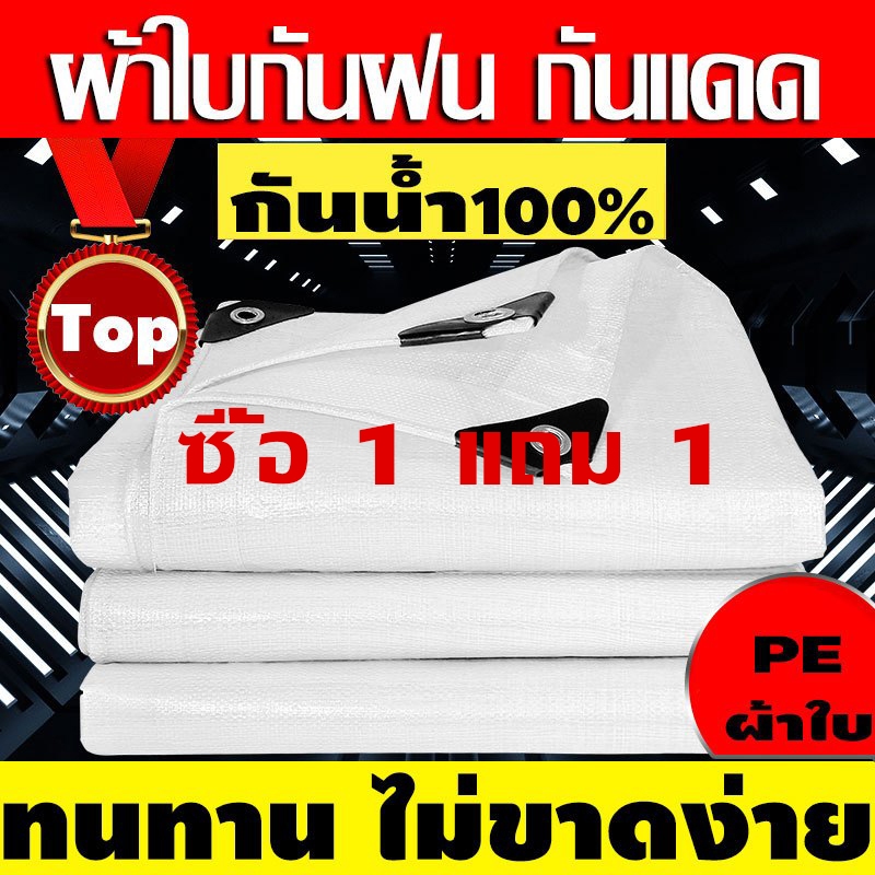 【แถม2x2m】ผ้าใบกันฝน PE (มีตาไก่) กันแดด สีขาว คลุมของ คลุมรถ ผ้าเต้น ขนาด 2×2 2×3 2×4 3×4 เมตร