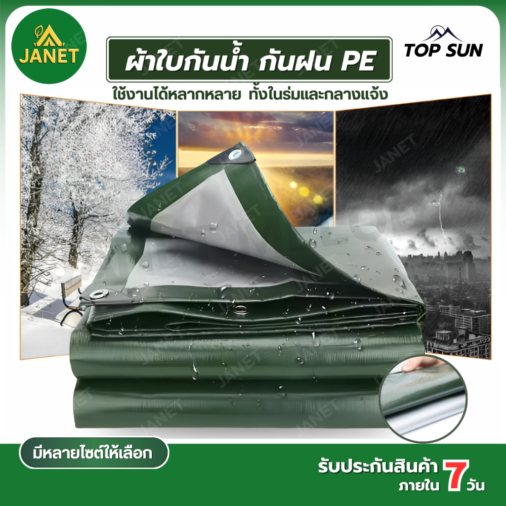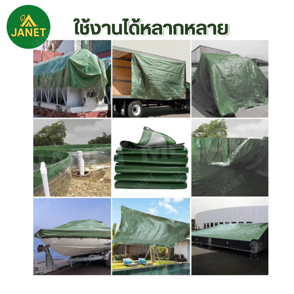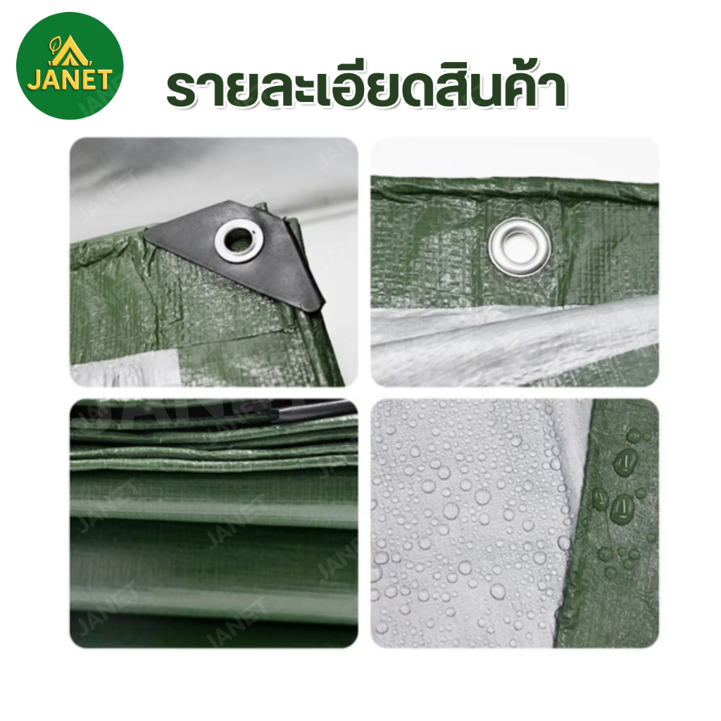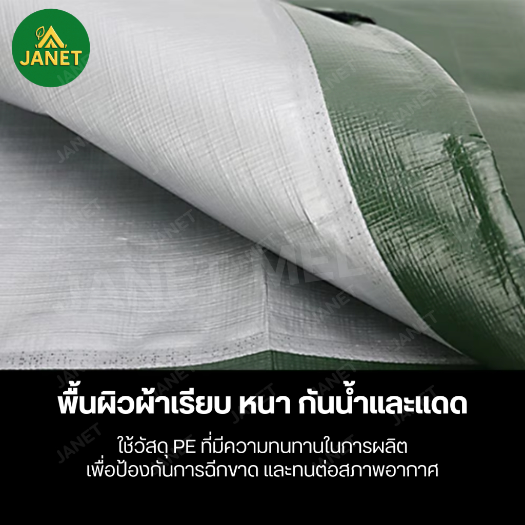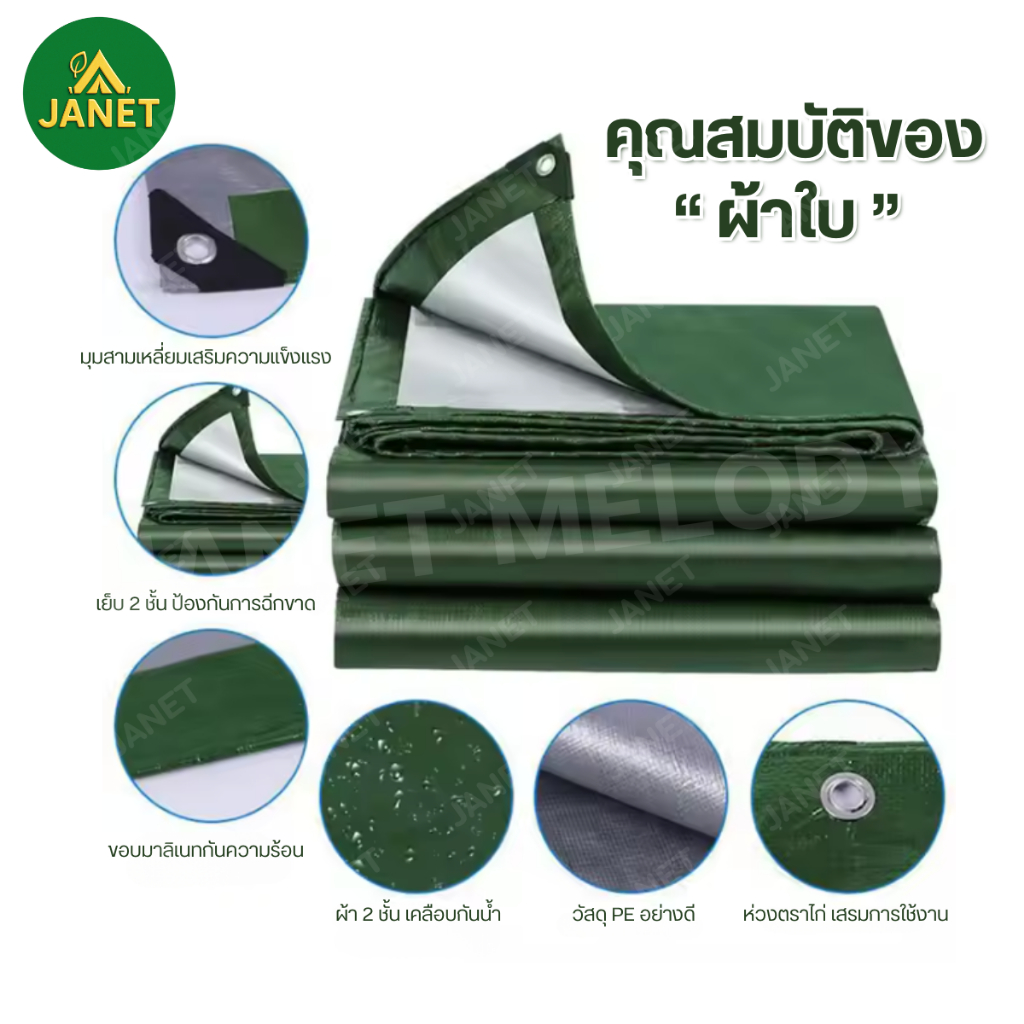 Janet ผ้าใบกันฝน กันแดด ขนาด 2×3 , 2×4 , 3×4 (มีตาไก่) ผ้าใบกันน้ำ ผ้าใบ PE