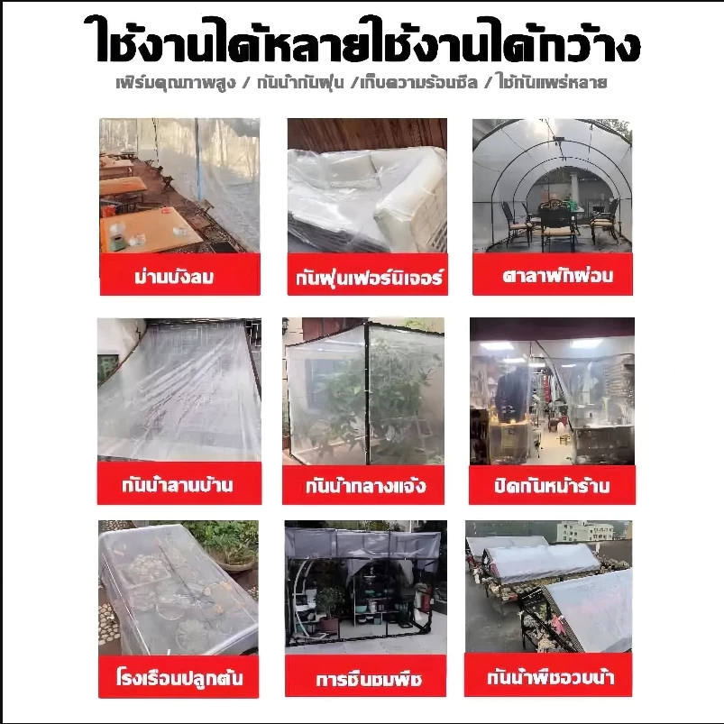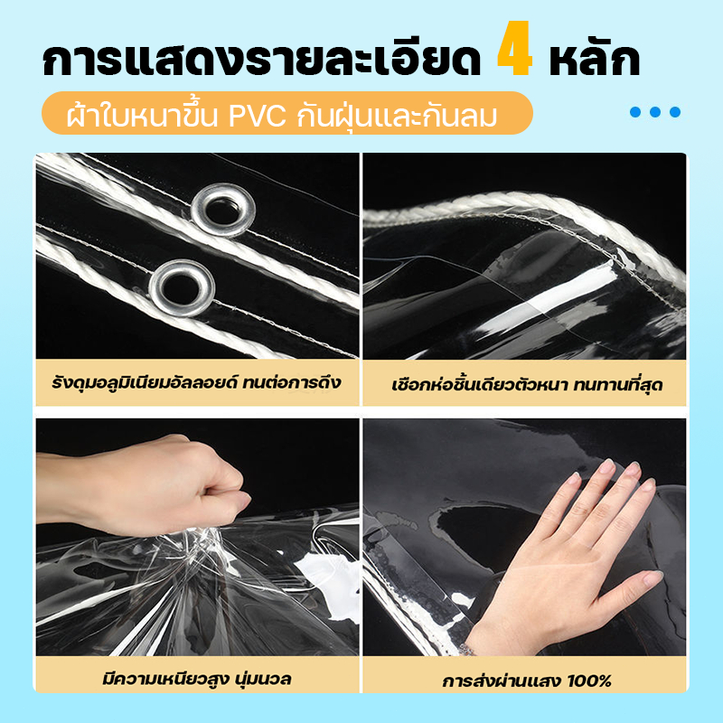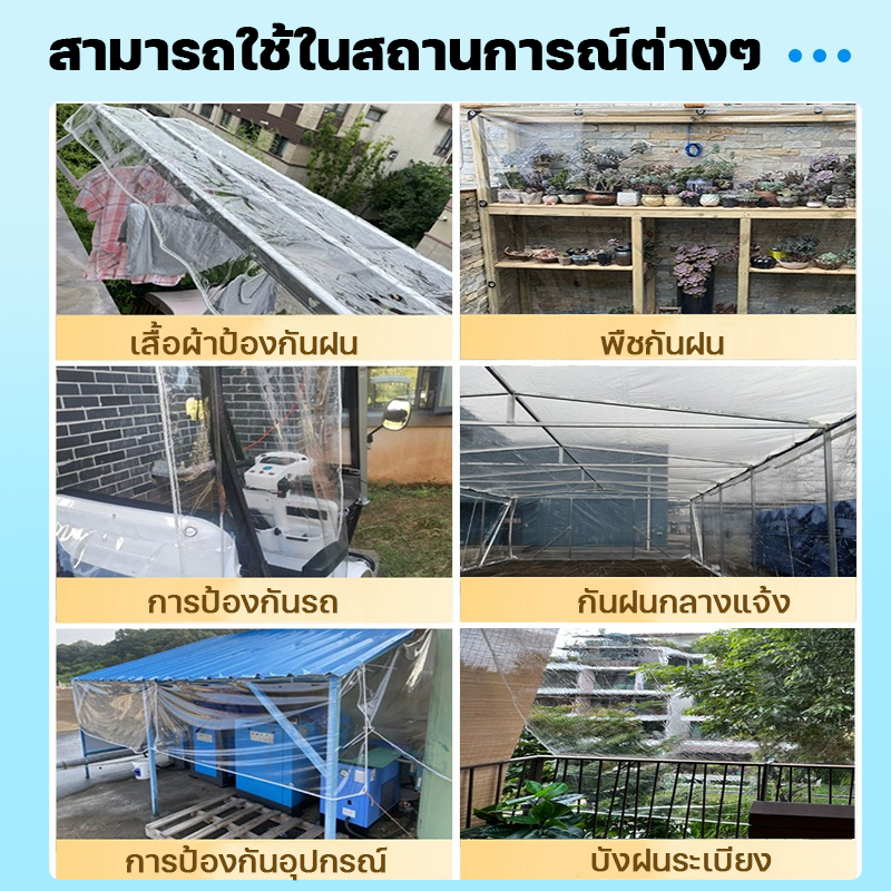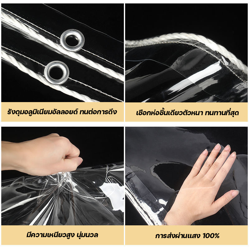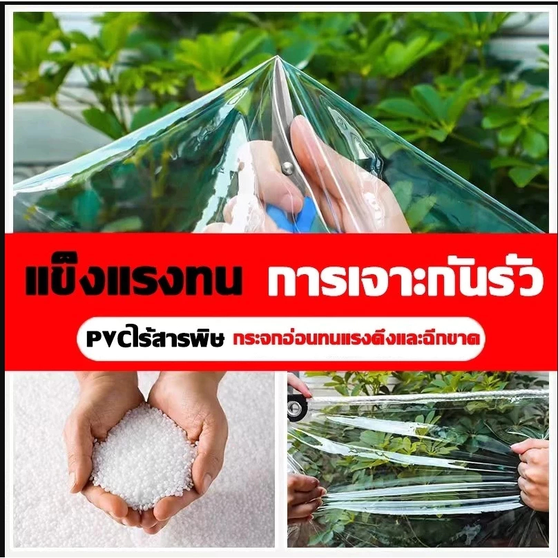 100%พลาสติกใส ผ้ายางใสแบบขุ่น พายุฝนระดับ 10 ไม่สามารถซึมผ่านได้ พลาสติกกันฝน กันน้ำ PVC ผ้าใบกันแดดฝน