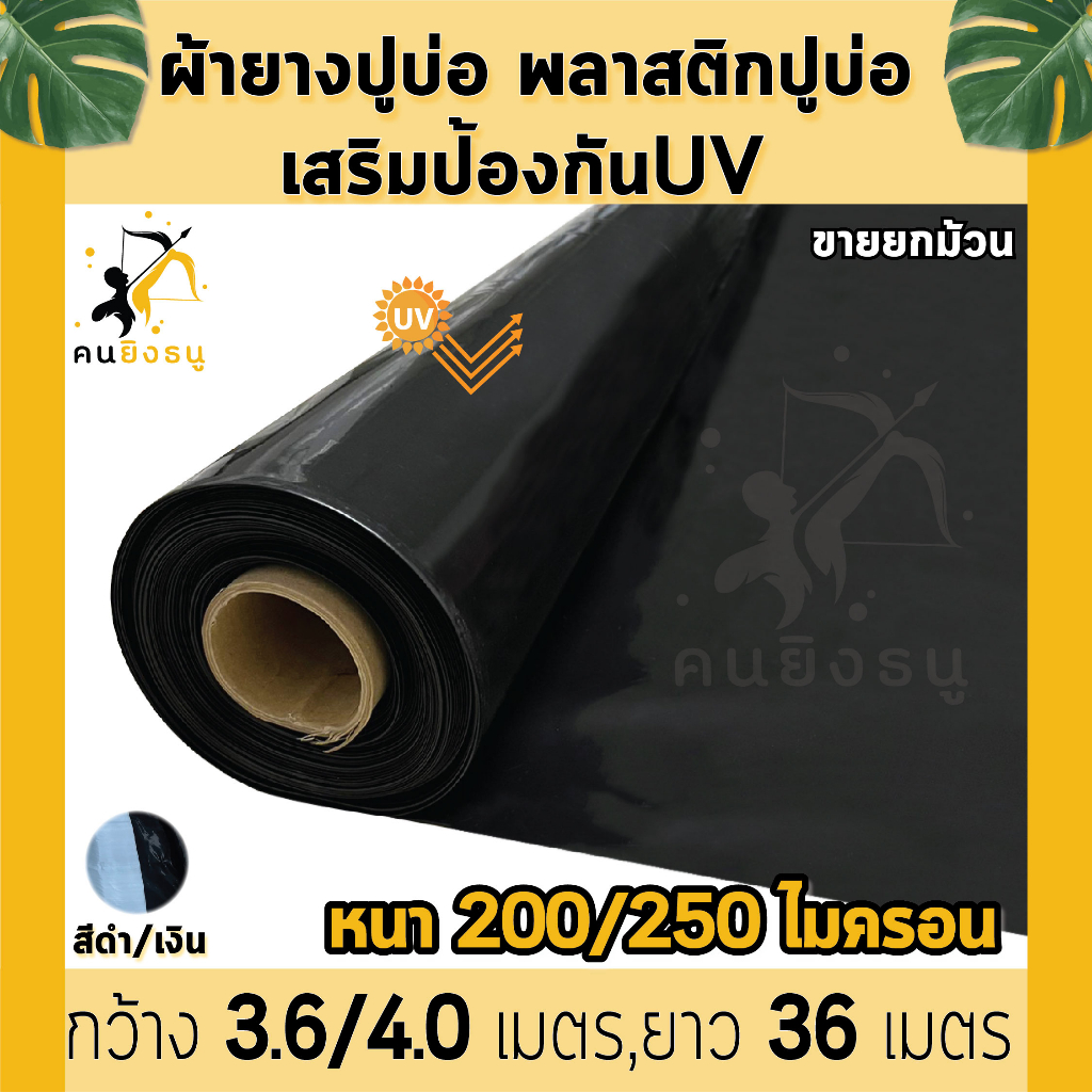 ผ้ายางปูบ่อ พลาสติกปูบ่อ หนา 200 250ไมครอน หน้ากว้าง 4.0 เมตร เสริมป้องกันUV ปูบ่อปลา บ่อกบ