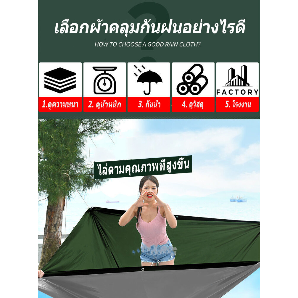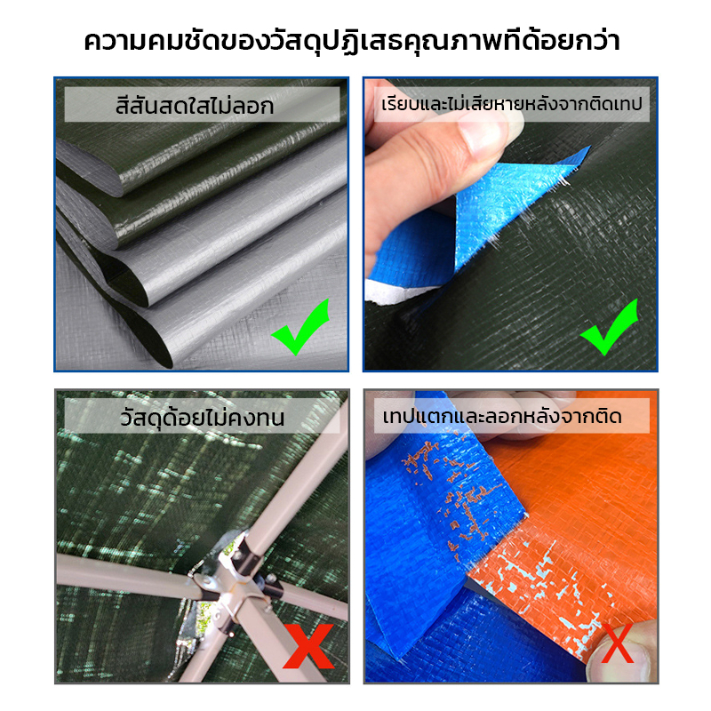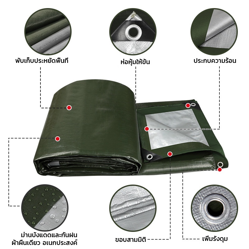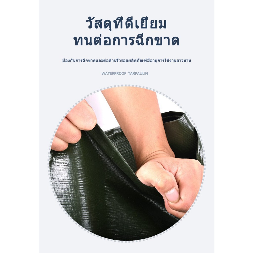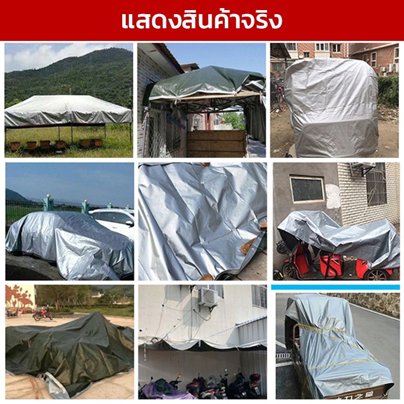 ซื้อผ้าใบกันน้ำจากร้านเรา แถมฟรีเชือก 10m ผ้าใบกันน้ำ กันสาด 100% (เจาะรู)2