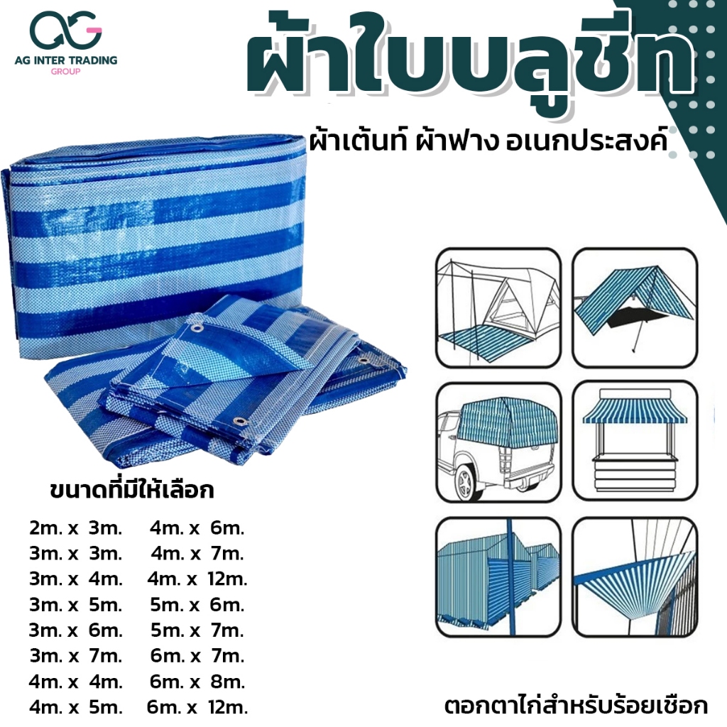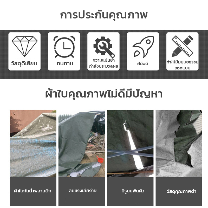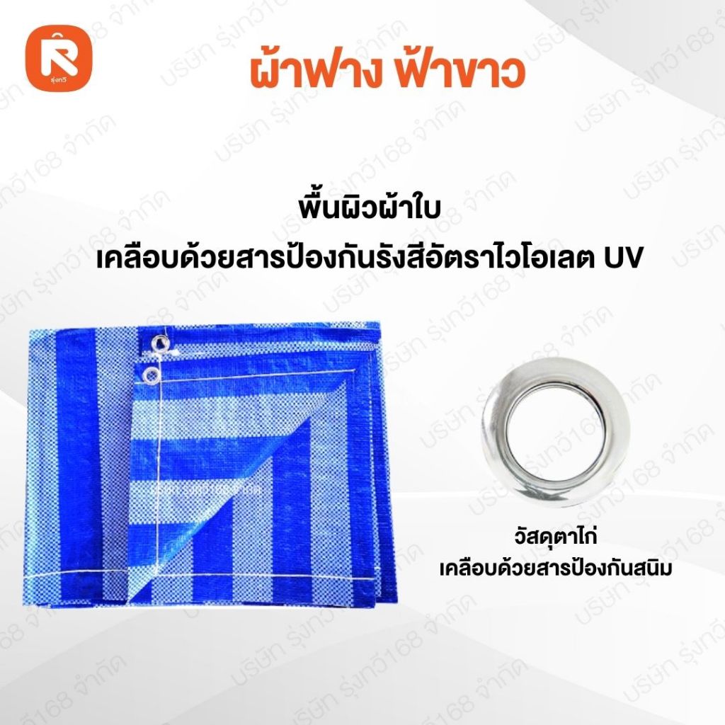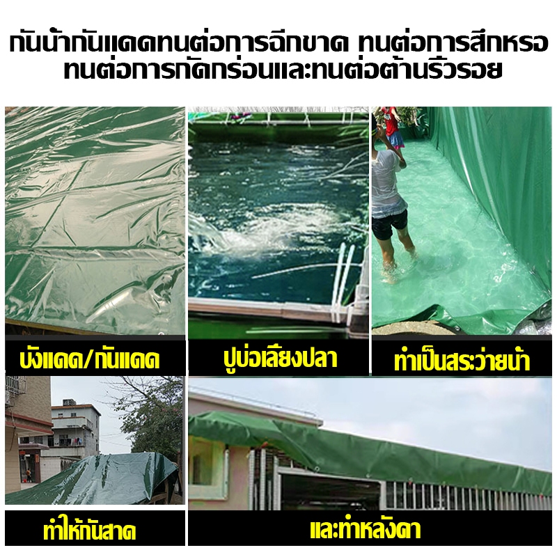 ซื้อผ้าใบกันน้ำจากร้านเรา แถมฟรีเชือก 10m ผ้าใบกันน้ำ กันสาด 100% (เจาะรู)2