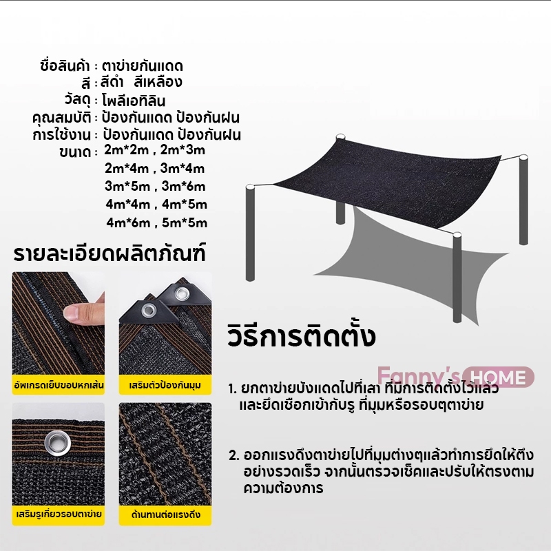 ตาข่ายกรองแสง 99% [5ขนาด] 2x3M/2x4M/3x4M/3x5M/4x6M • ตาข่ายกันแดดทนUV • ใช้ได้ทั้งบ้าน-สวน-โรงรถ • แข็งแรงไม่