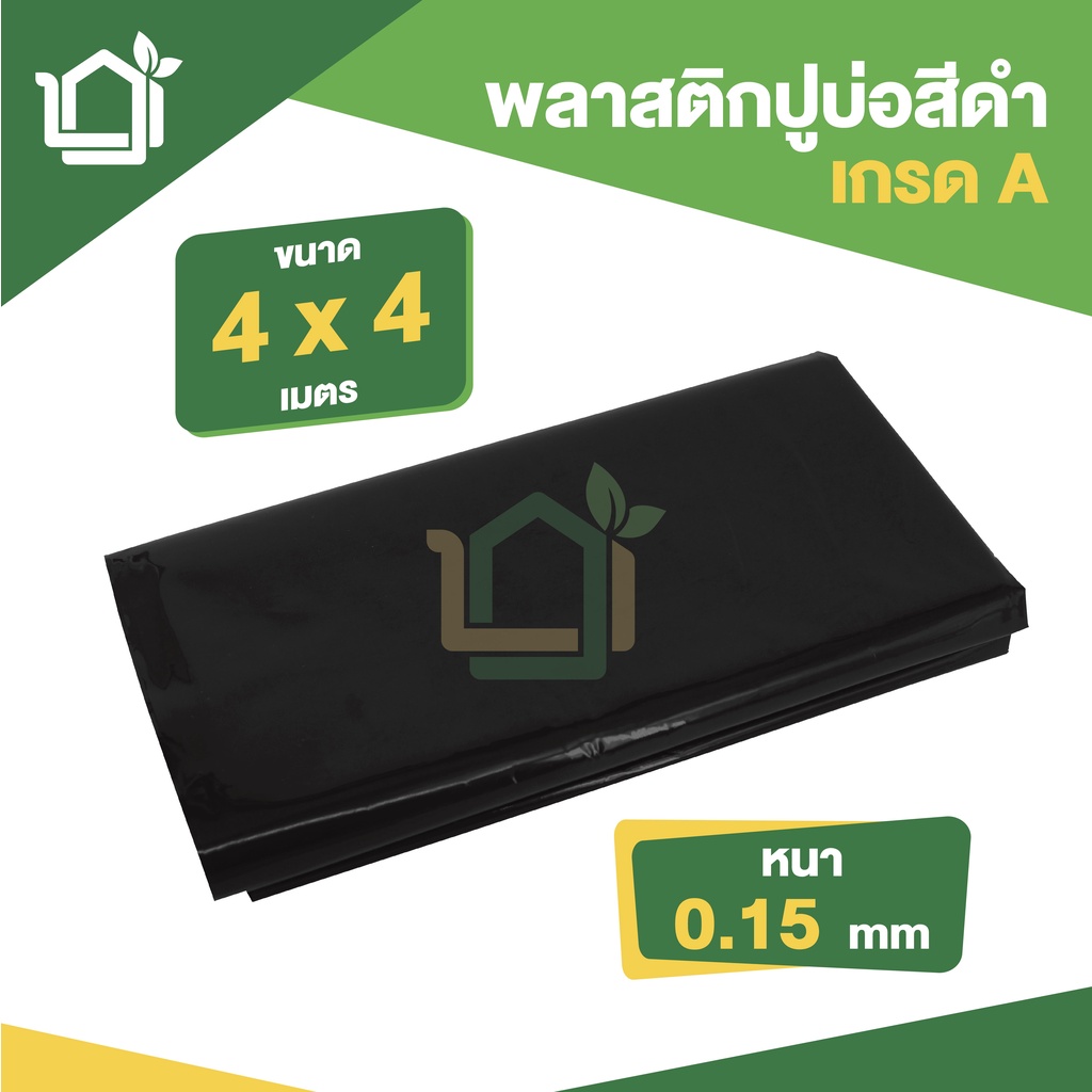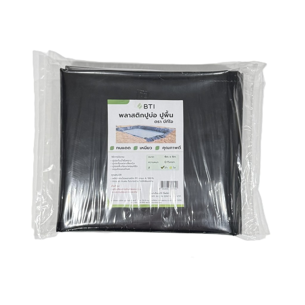 พลาสติกปูบ่อ PE สีดำ หนา 0.15มม ขนาด 4 x 4 เมตร เกรด A ทนแดด ผ้ายางปูบ่อ BTI