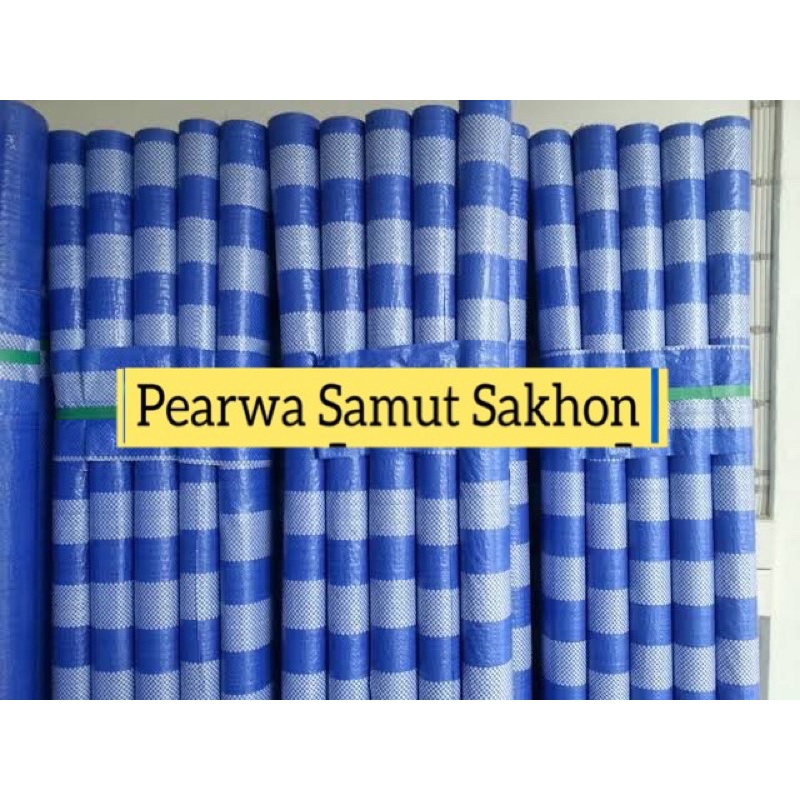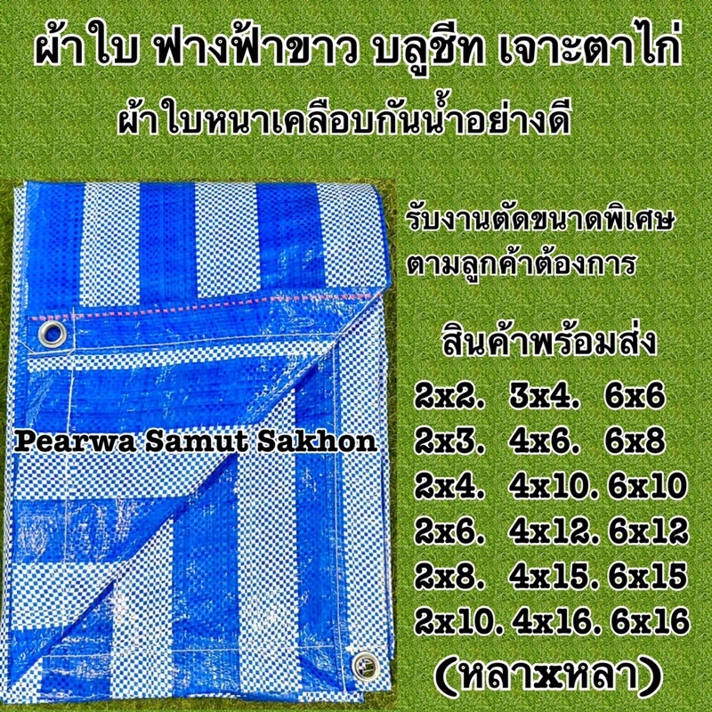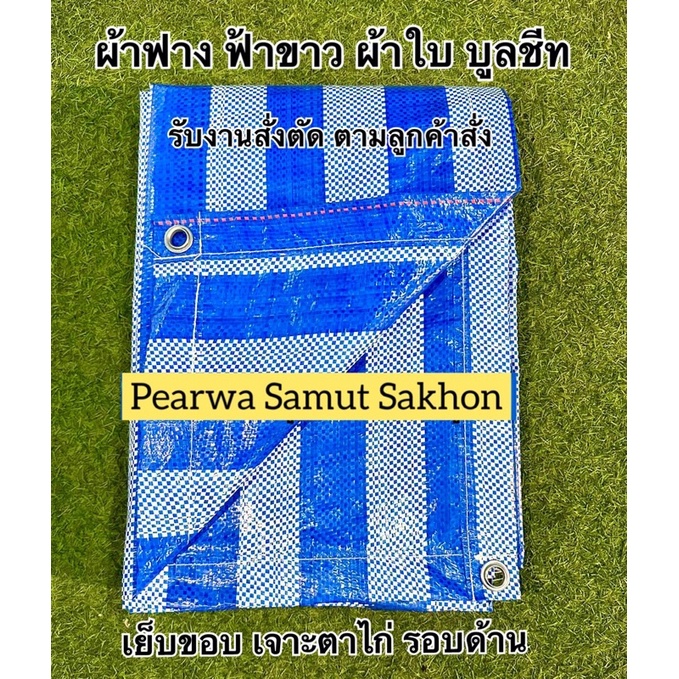 ผ้าใบฟ้าขาว เจาะตาไก่ ผ้าใบริ้วฟ้าขาว บูลชีท เคลือบอย่างดี