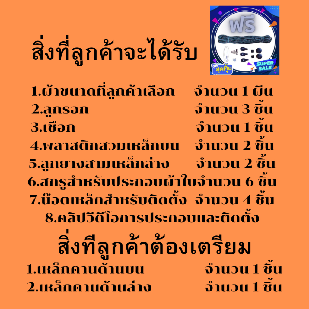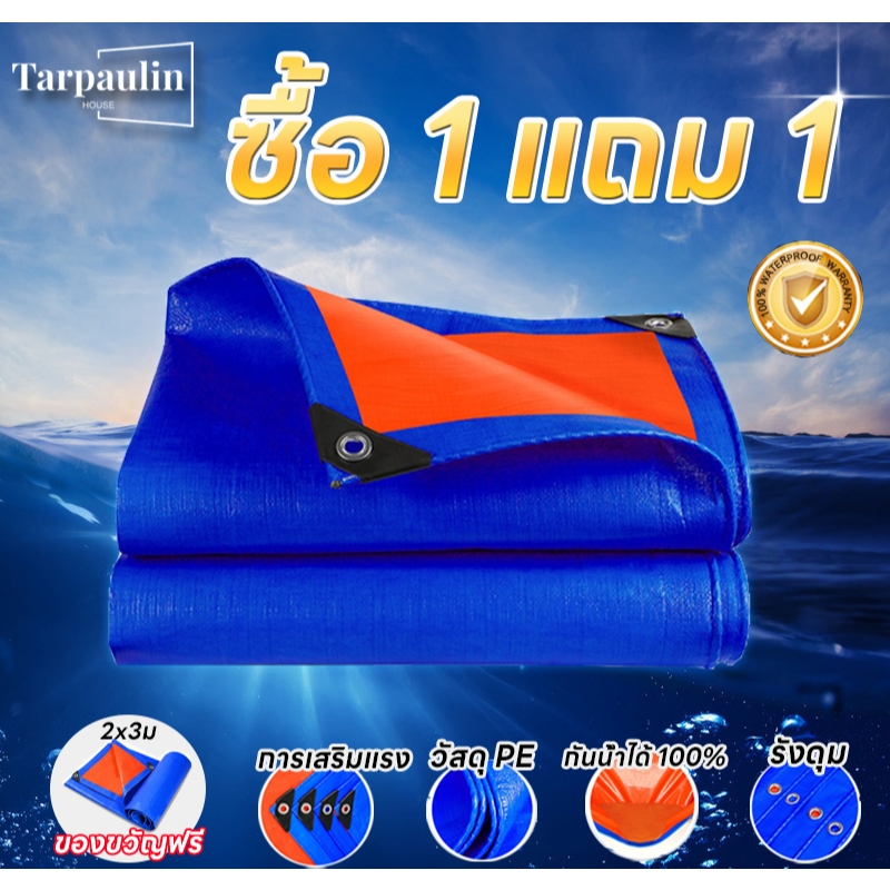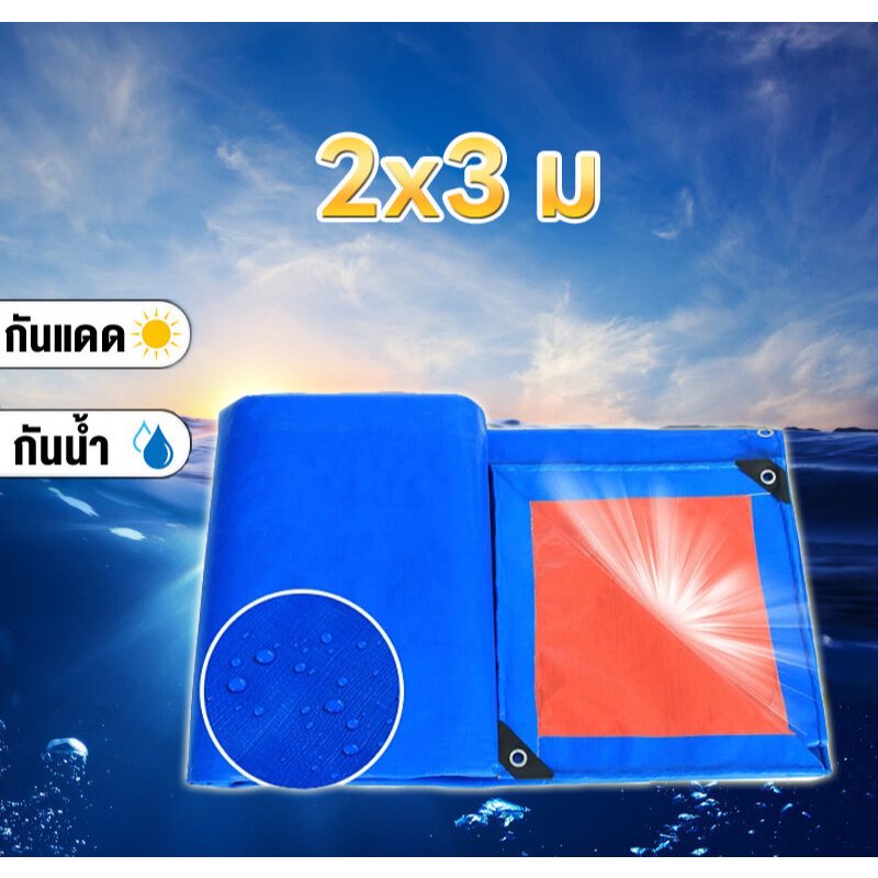 ผ้าใบพลาสติกอเนกประสงค์ กันแดด กันน้ำ 100% หนา 2 ด้าน กันแดด กันน้ำ (มีรู) ผ้าใบบังแดด