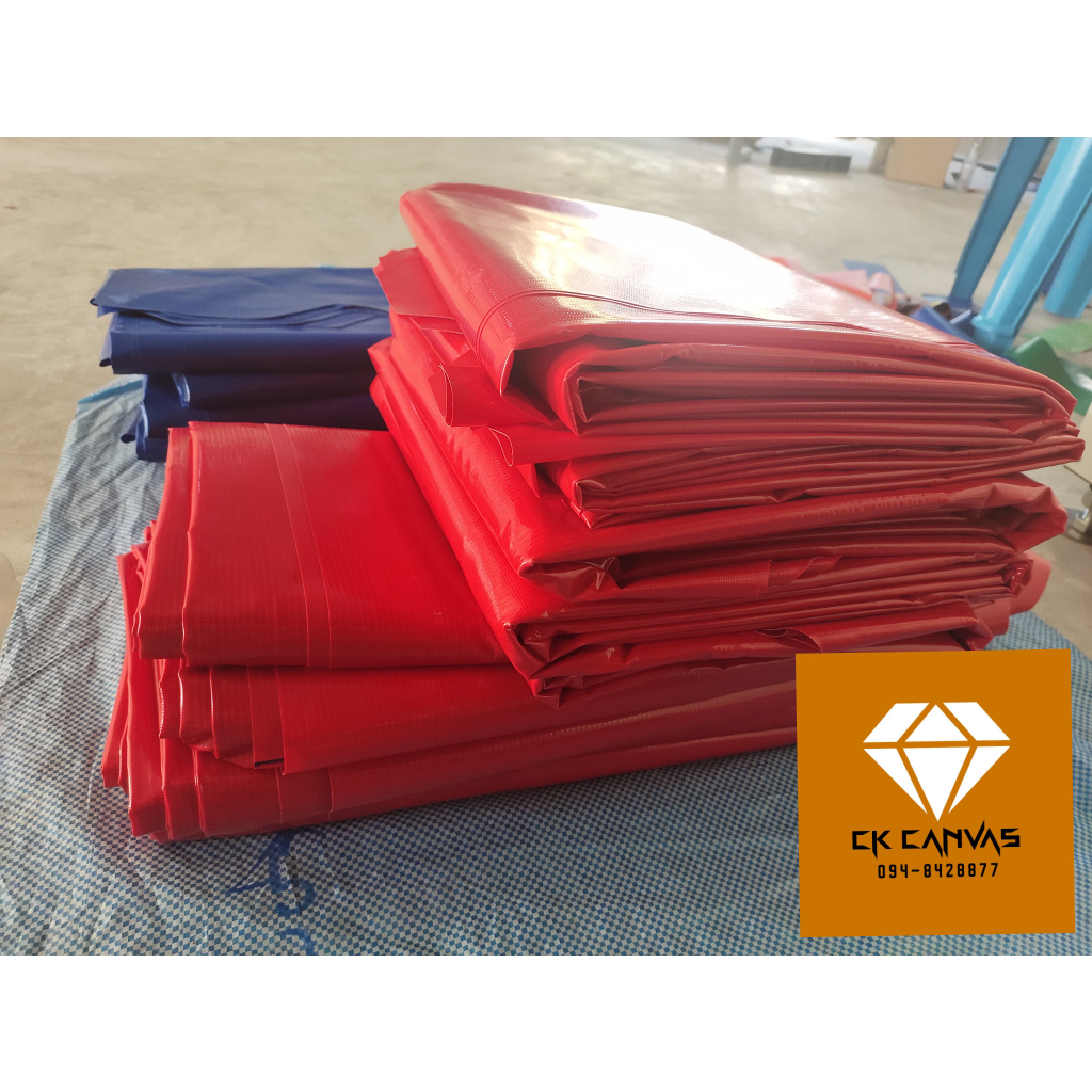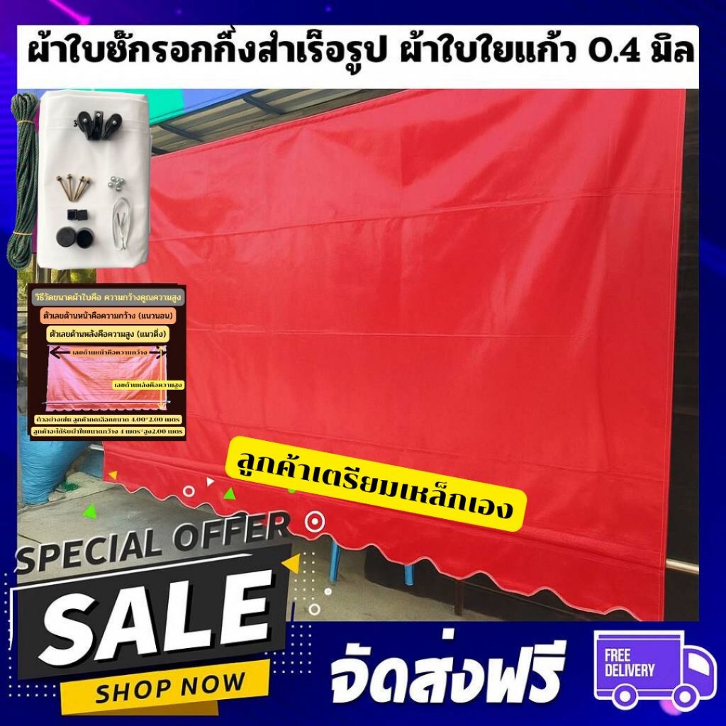 ผ้าใบชักรอกกึ่งสำเร็จรูป0.40มิล สีแดง ฟรีอุปกรณ์ ติดตั้งเอง กันแดด กันฝน