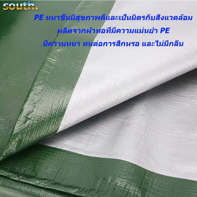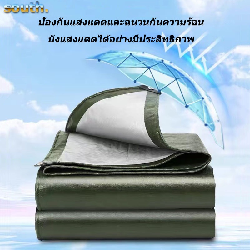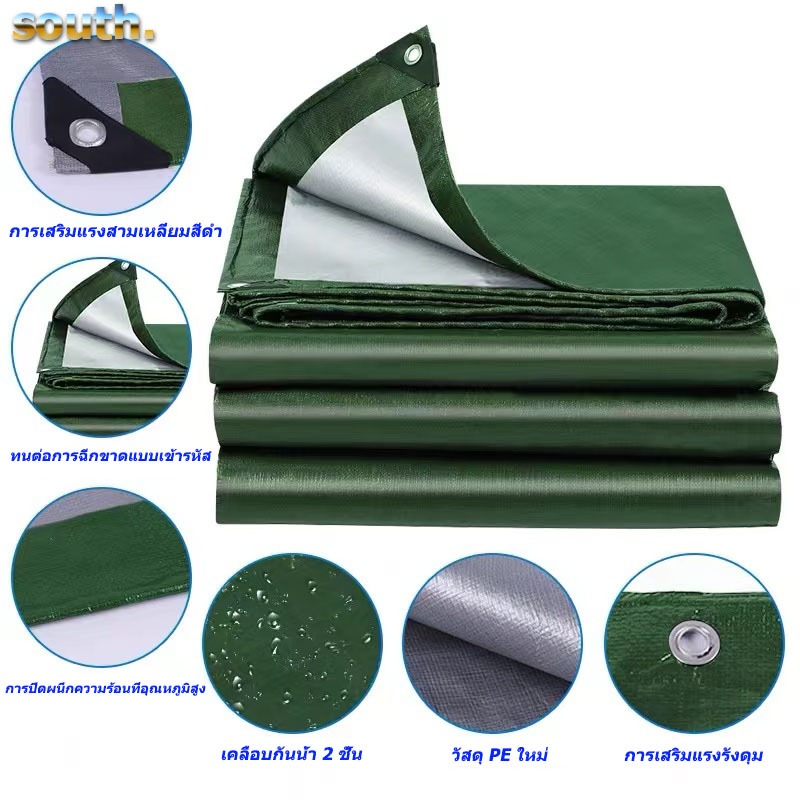 ผ้าใบกันแดดฝน อย่างดี วัสดุPE (มีตาไก่) ผ้าใบกันแดด อเนกประสงค์ ผ้าคลุมรถ ผ้าใบกันน้ำ กันฝน มีหลายขนาด Green silver