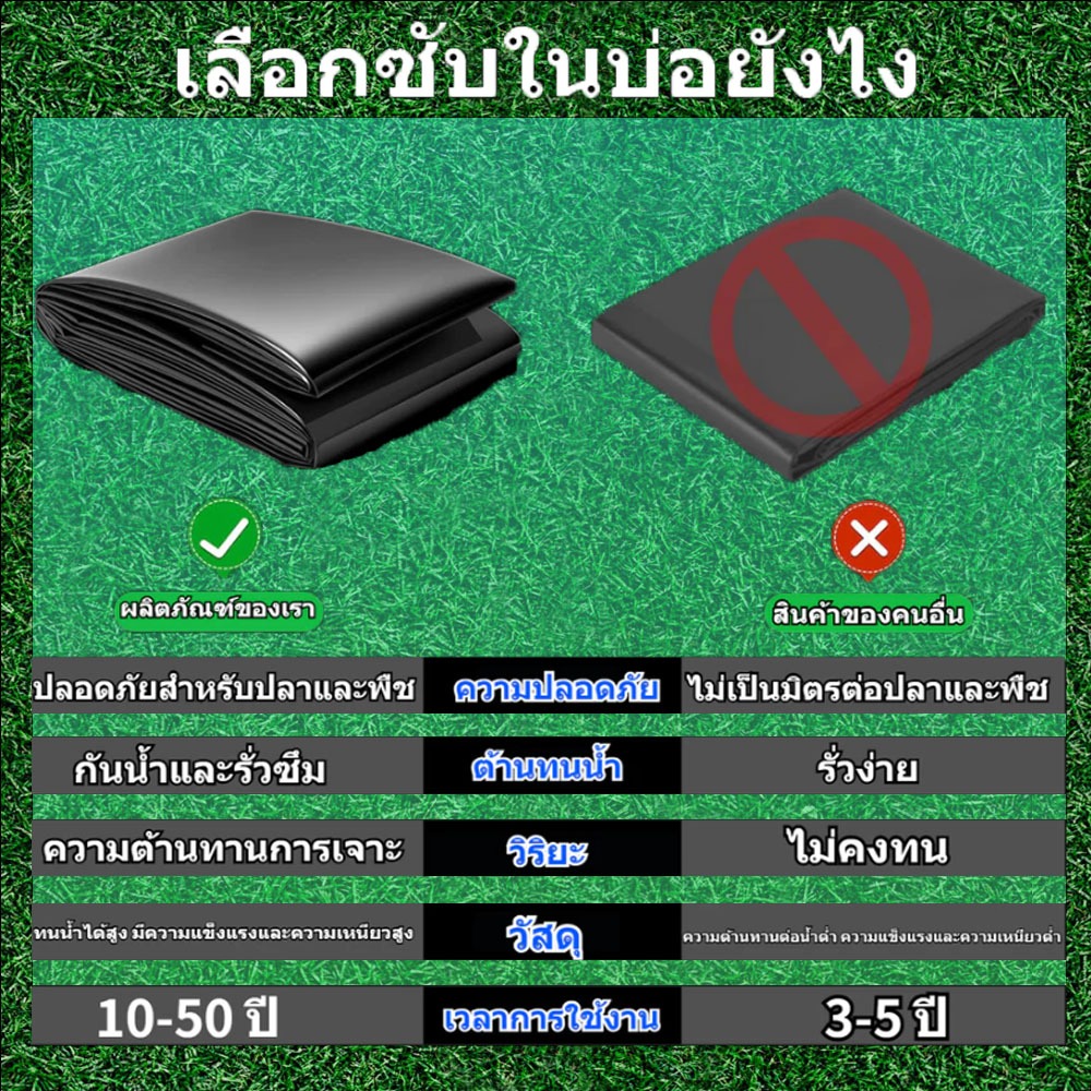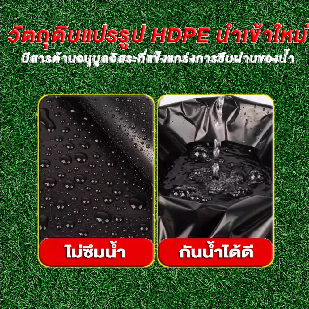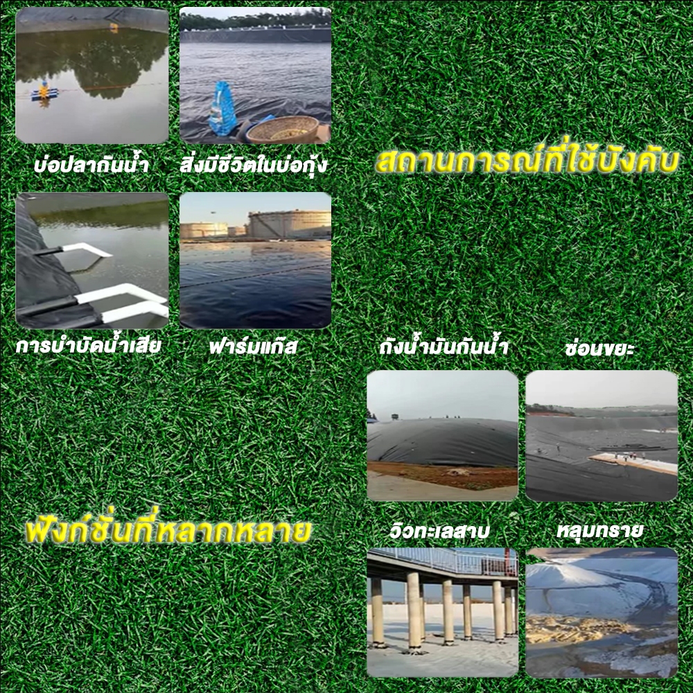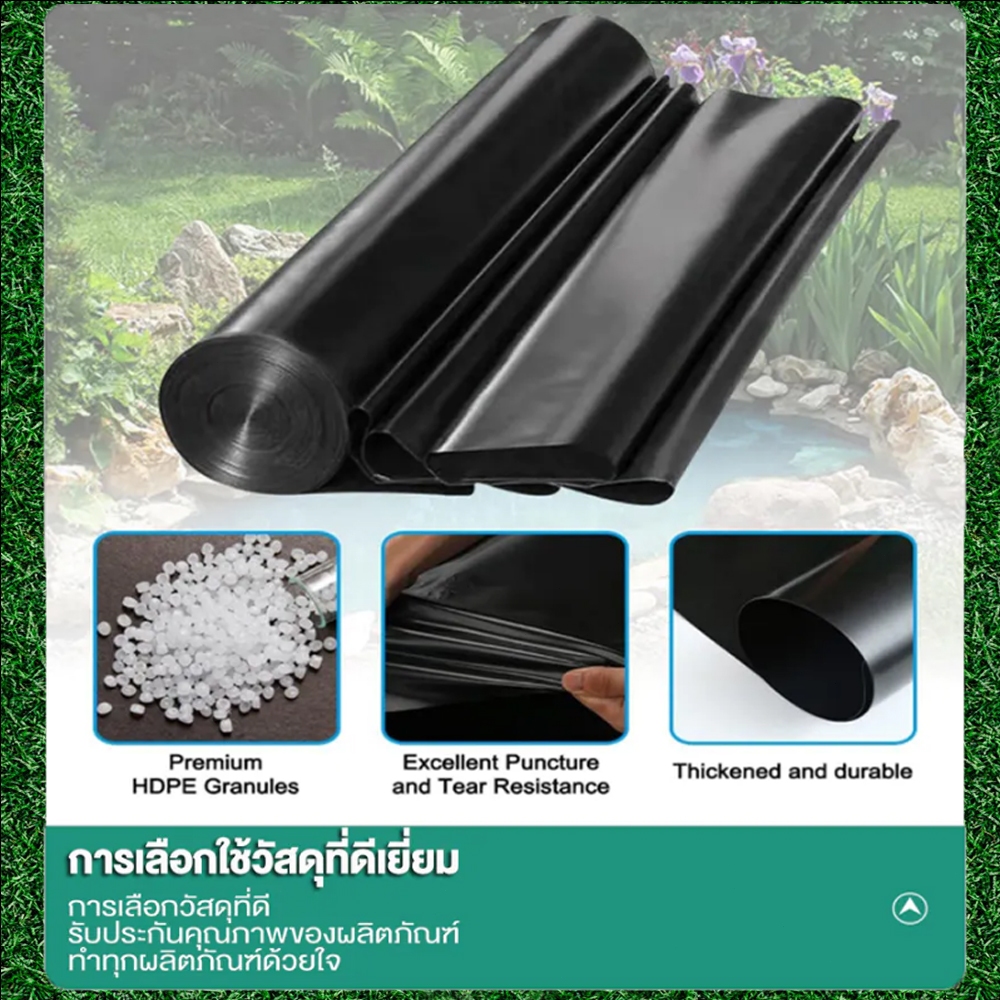 พลาสติกปูบ่อ 300/500ไมครอน ฟิล์มบ่อปลา ผ้ายางปูบ่อปลา HDPE เสริม UV ทนทาน50ปี ออกแบบและทดสอบโดยวิศวกร