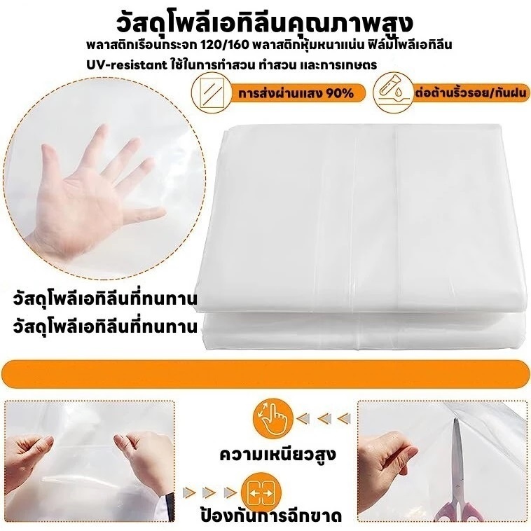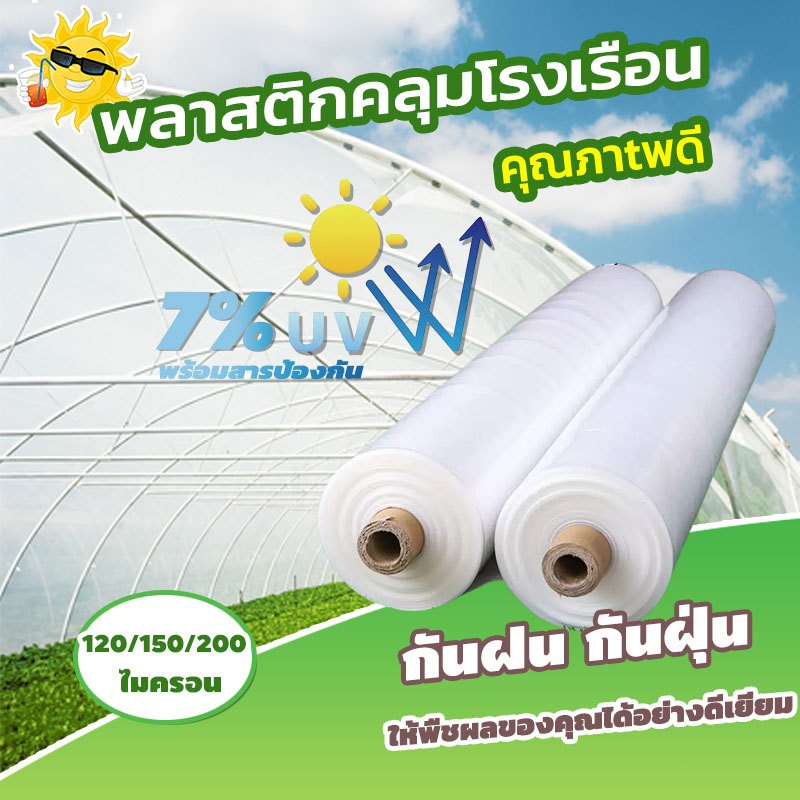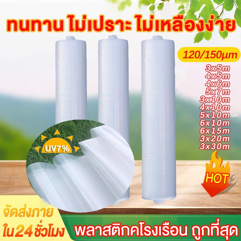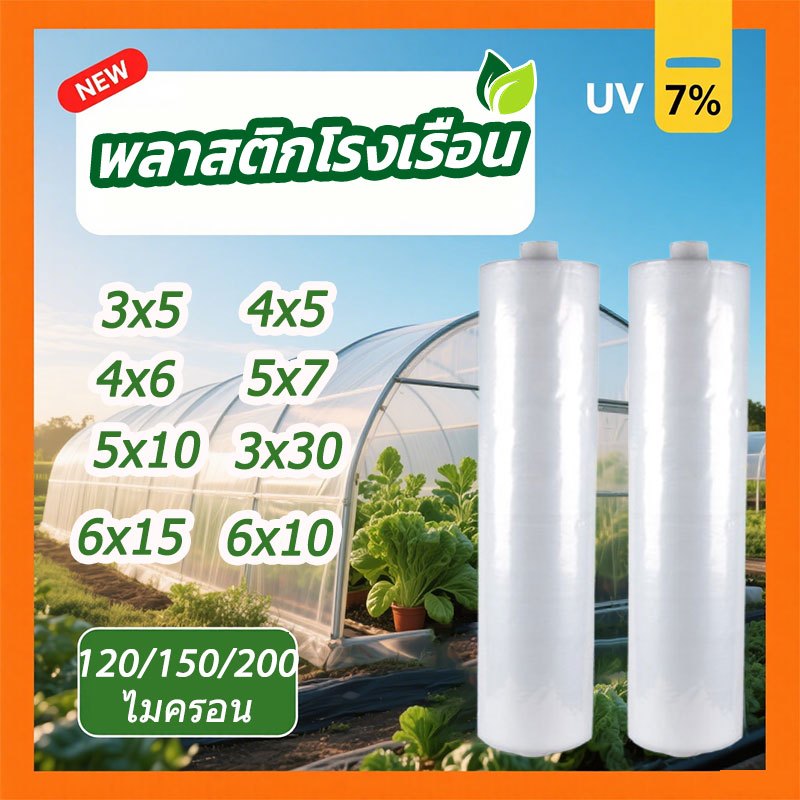 พลาสติกโรงเรือน พลาสติกใส พลาสติกคลุมโรงเรือน กันฝนgreenhouse หนา 150 ไมครอน UV7% โรงเรือนแคคตัส พลาสติกปูบ่อ กันสาด6×10
