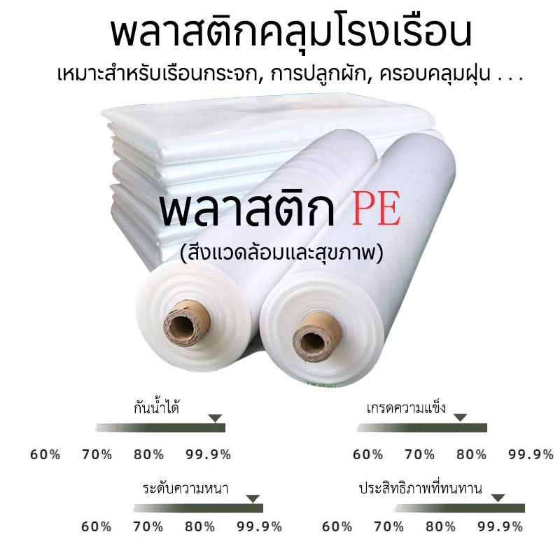 พลาสติกใส คลุมหลังคากันสาด พลาสติกคลุมโรงเรือน ฟิล์มPE ปูบ่อ Green Houseกันฝน ผลิตจากวัตถุดิบเกรด Field selection A หนา