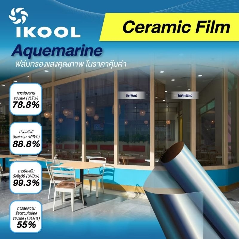 ฟิล์มใสกันร้อน iKOOL รุ่น Aquemarine ฟิล์มใสกัน UV 99.99% ฟิล์มติดอาคาร ฟิล์มใสกันความร้อน พร้อมส่ง